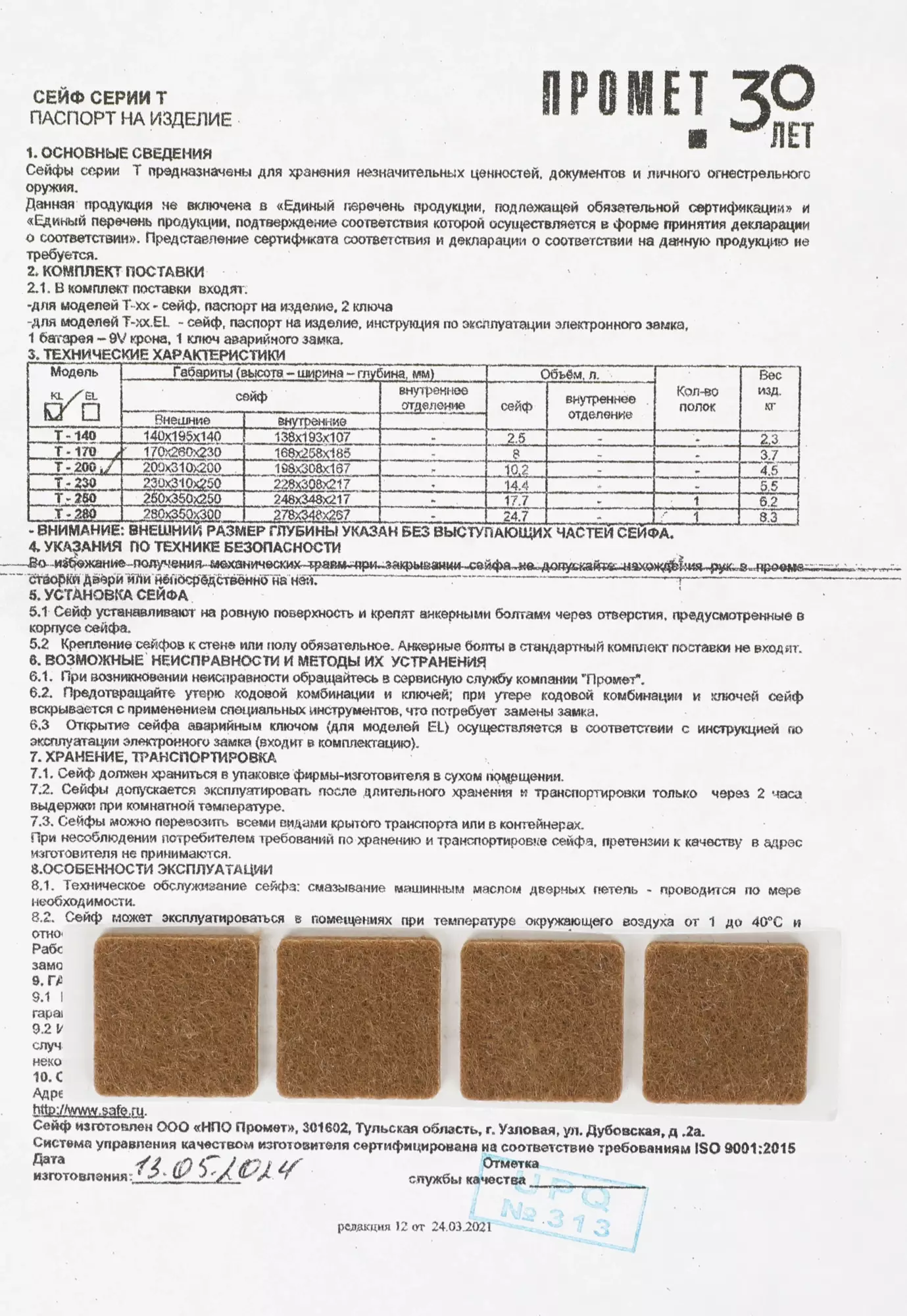 Сейф мебельный Aiko T 200 KL графит (s10399211114)