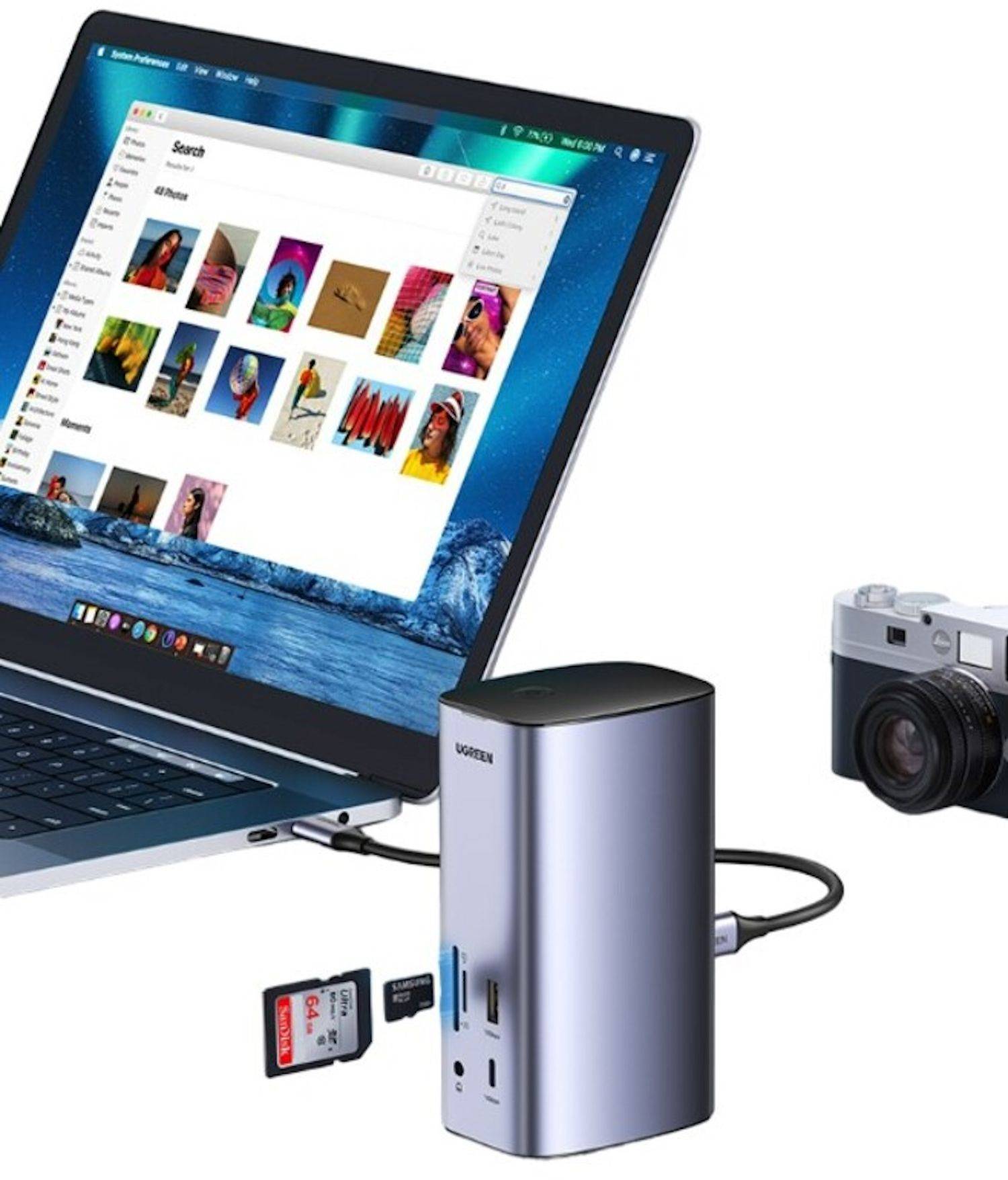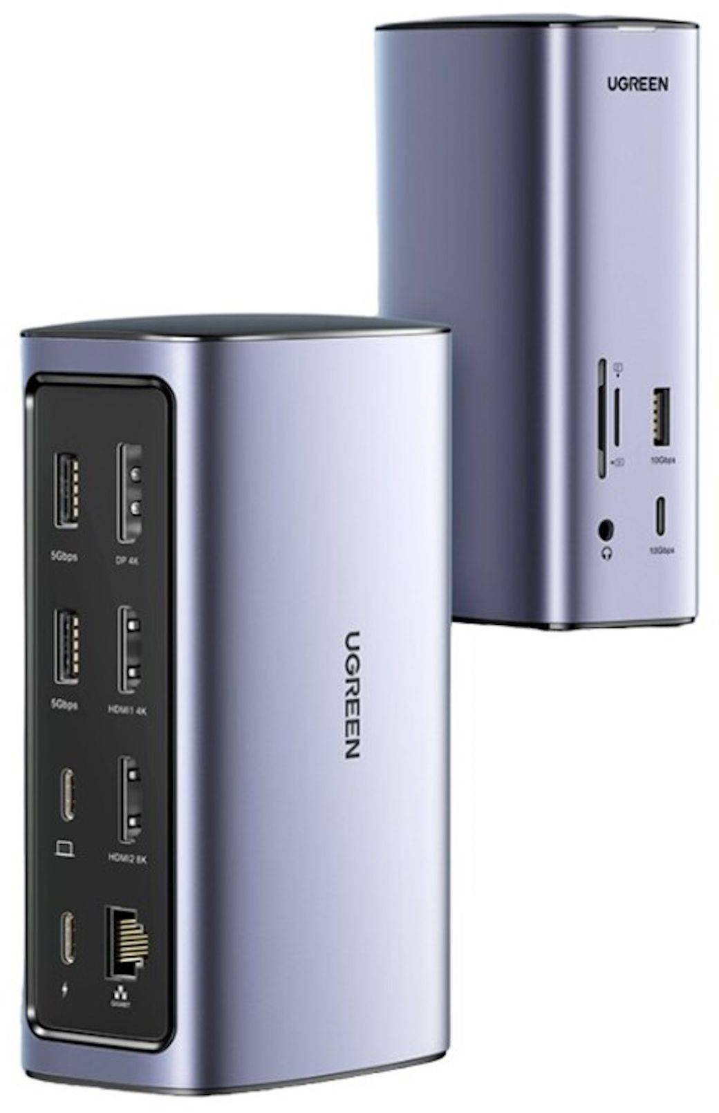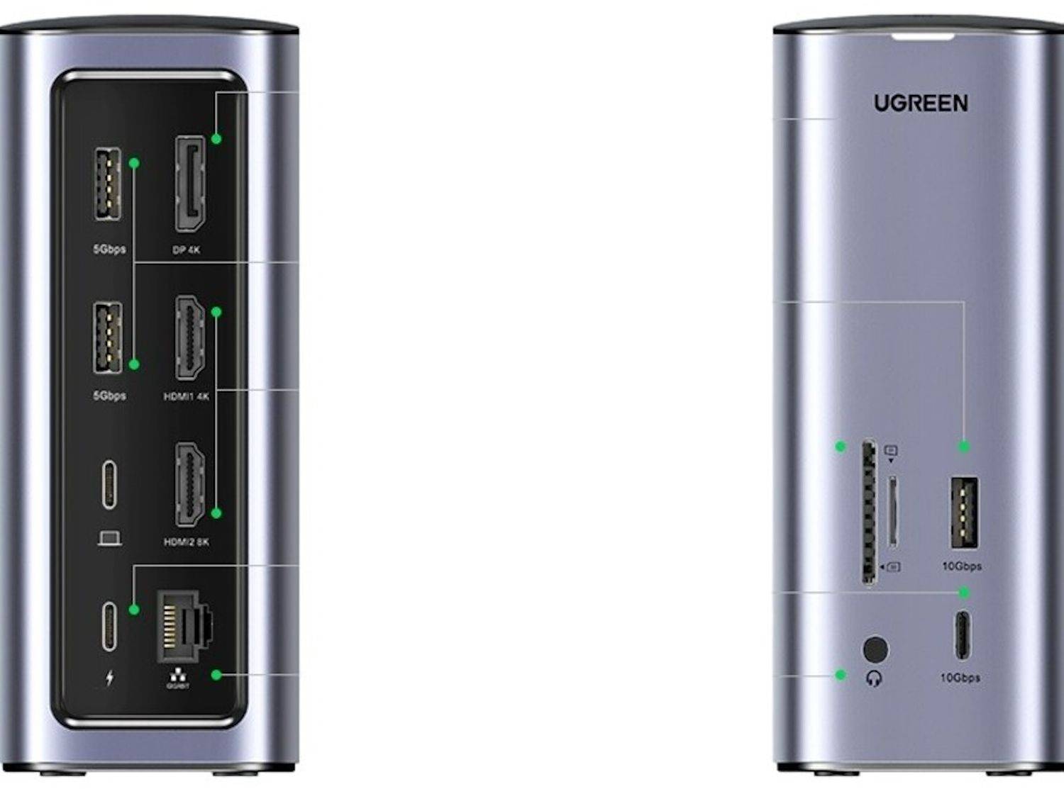 ОписаниеПревратите один порт Type-C в двеннадцать различных портов с док-станцией UGreen CM555. В своем составе хаб влючает - 2 порта USB-A (до 5Gbps), DP - 4K@60Hz, HDMI 4K@60Hz, HDMi 8K@30Hz, USB-C PD 100W, RJ45 1000Mbps, SD/TF 104Mb/s, USB-C 3.1 - 10GBps, 3.5 mm audio, USB-A 3.1 - 10Gbps.