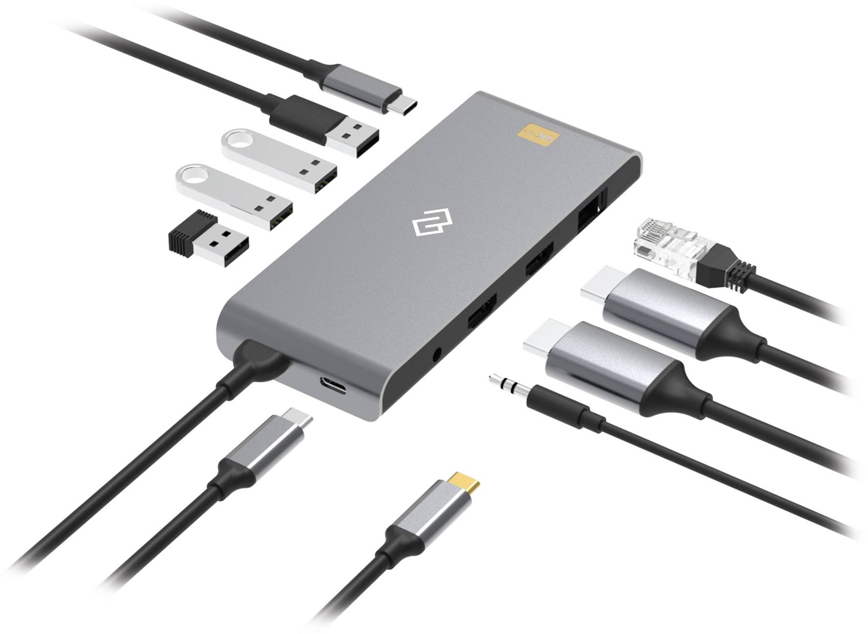 • Описание Type-C док-станция DIGMA, 8 портов - 2x HDMI (up to 4K@60Hz, 2K/FULL HD@144Hz), 2x USB-A 3.2 Gen1 (5Gbps), 2x USB-A 2.0 (480Mbps), 1x RJ45 (10/100/1000M), 1x 3.5mm Audio Jack, 1x USB-C 3.2 Gen1 (5Gbps), 1x USB-C PD (up to 100W)