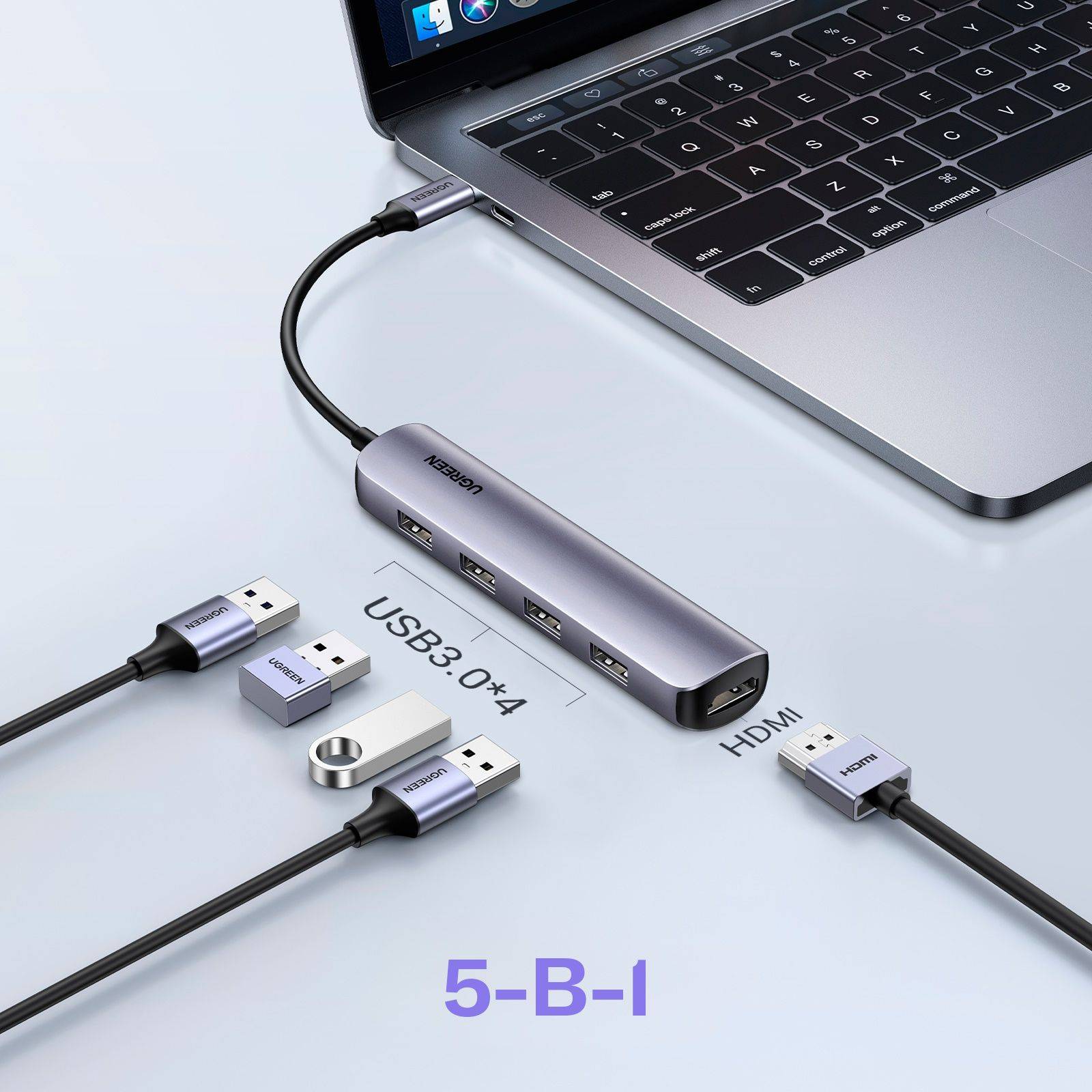 ОписаниеUgreen CM417 5 в 1 – многофункциональный USB Type-C хаб в компактном корпусе с разъемом HDMI с возможностью выводить изображение в разрешении 4K и четырьмя полноразмерными USB 3.0. Корпус Ugreen сделан из анодированного алюминия, который отлично выглядит и устойчив к внешнему воздействию.