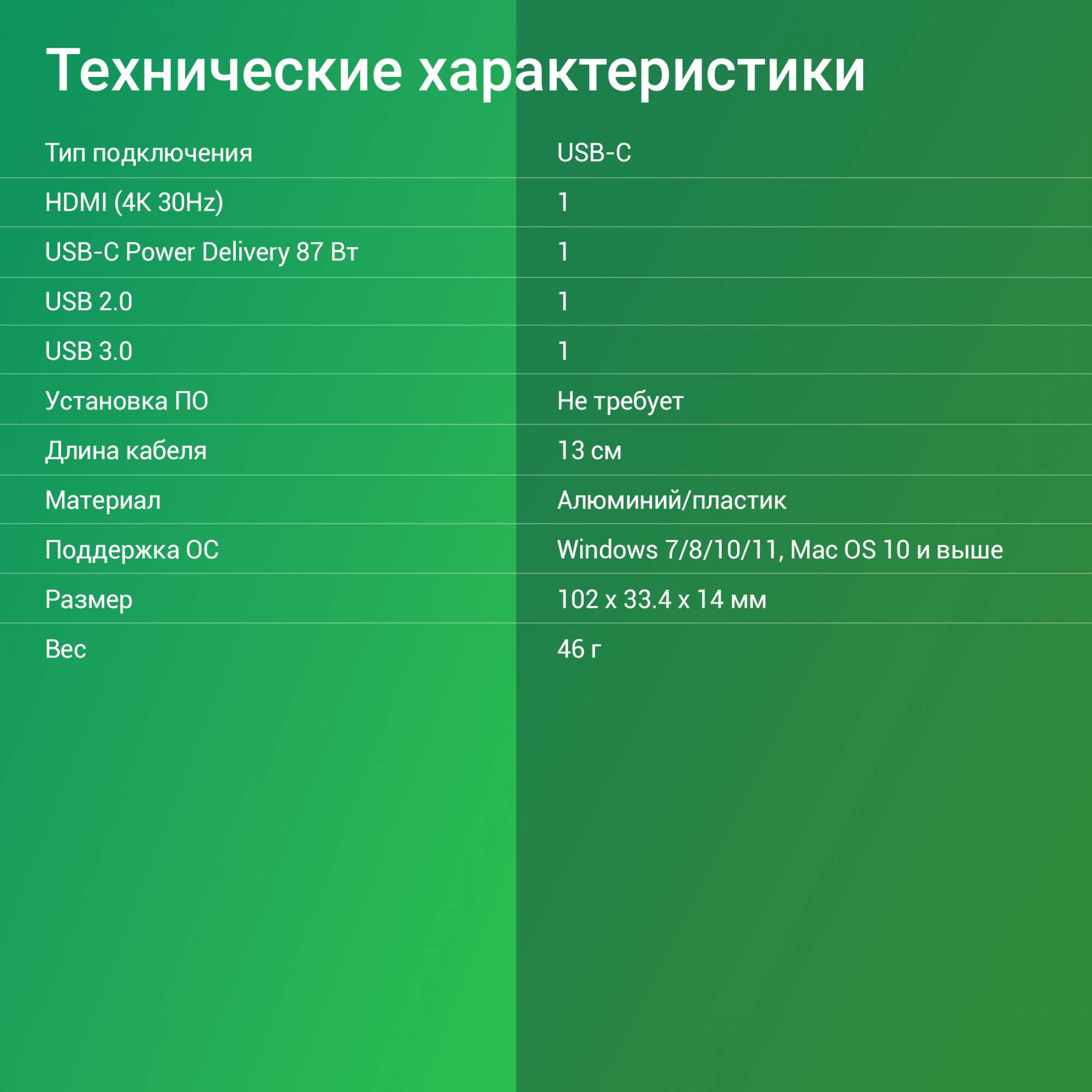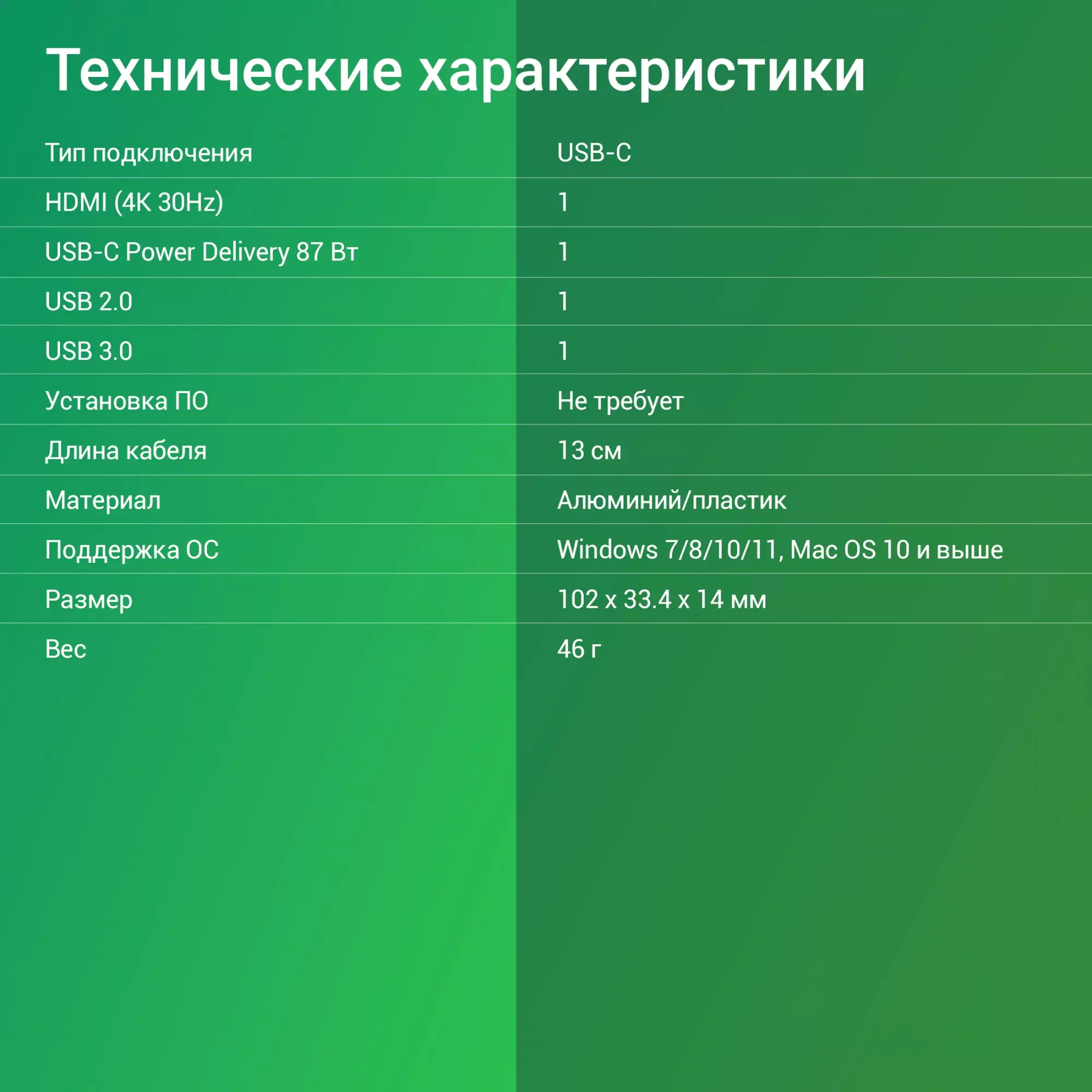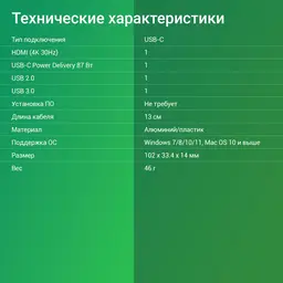 • Описание Type-C док-станция DIGMA, 5 портов (HDMI (4K@30Hz, FULL HD@60Hz) , USB-C PD 87W, Lan 100mb, 1xUSB 3.0, 1xUSB 2.0