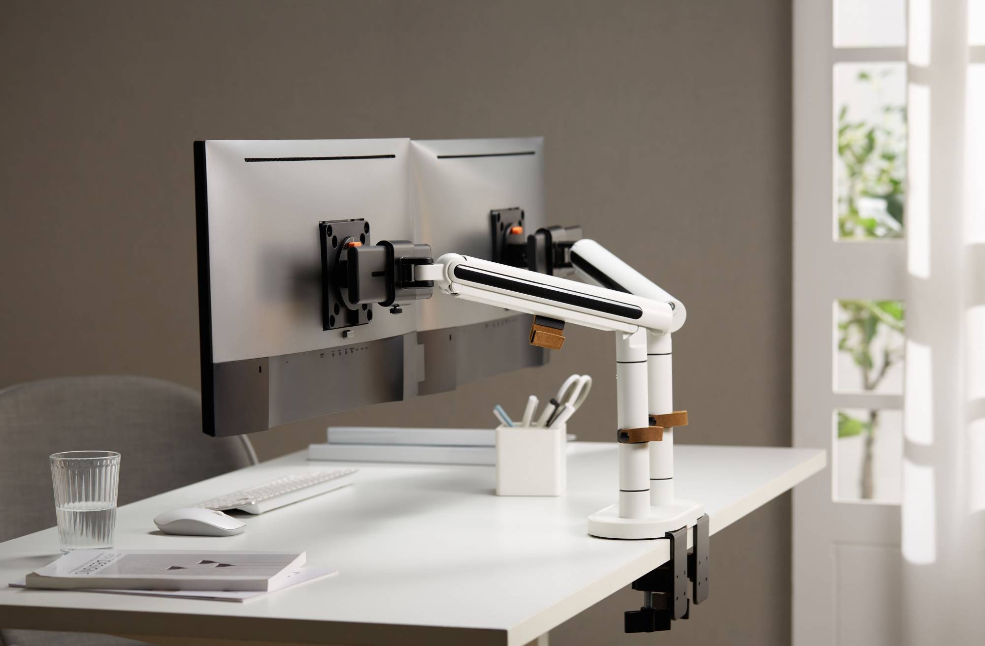 • Особенности Настольный кронштейн для двух мониторов с системой слайдер.