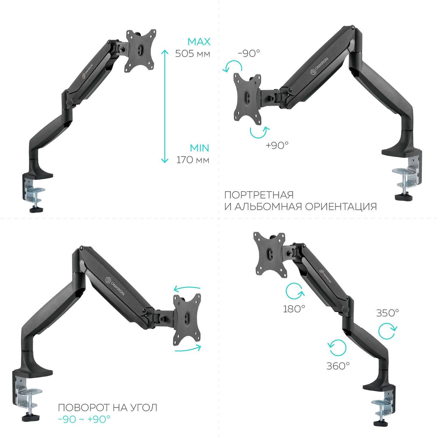 Кронштейн для монитора Onkron G100, настольный, поворот и наклон верт.перемещ., белый