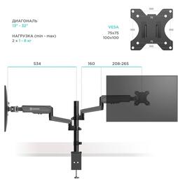 Кронштейн для монитора Onkron G140, настольный, поворот и наклон верт.перемещ., черный