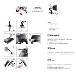 ОсобенностиКронштейн имеет встроенный кабель-канал. Установка на угол стола. Алюминиевый корпус.
