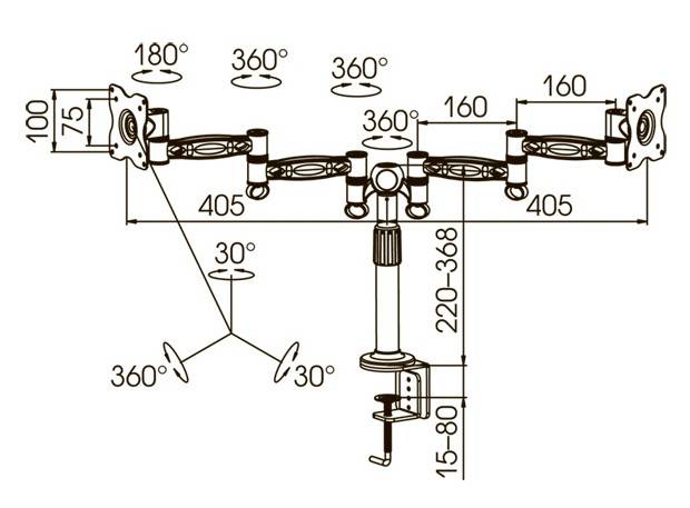 Кронштейн для монитора Kromax OFFICE-3, настольный, поворот и наклон, серый (20032)