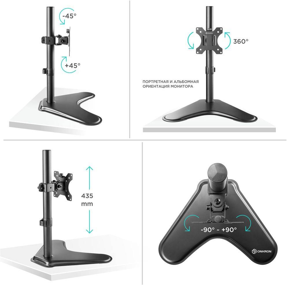 Кронштейн для монитора Onkron D101FS, настольный, поворот и наклон, черный