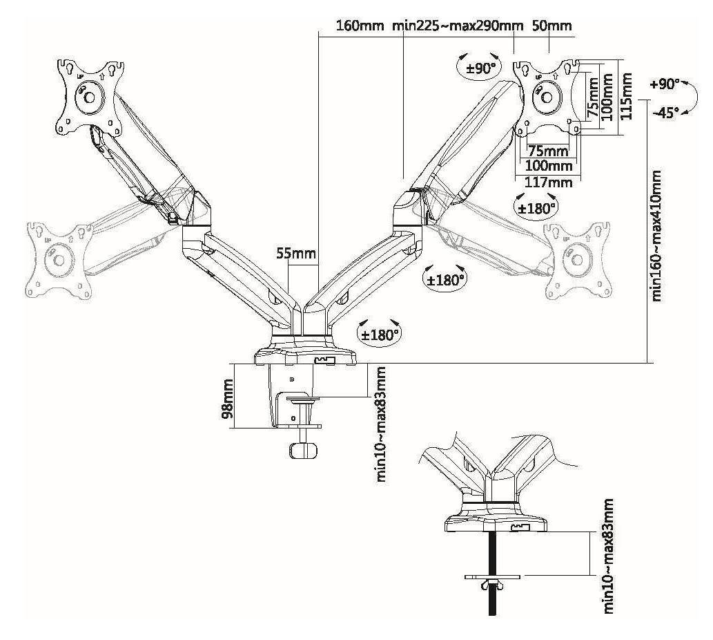 Кронштейн для монитора Ultramounts UM705, настольный, поворот и наклон верт.перемещ., черный