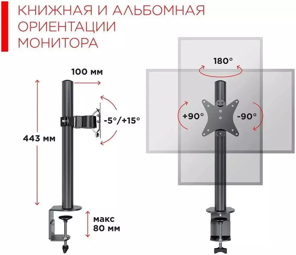 Кронштейн для монитора Holder MDS-M101-B, настольный, поворот и наклон верт.перемещ., черный