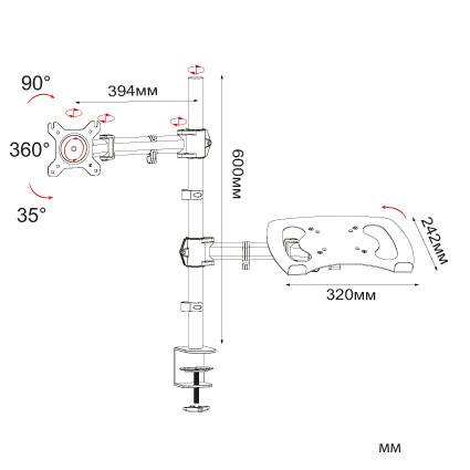 Кронштейн для монитора Cactus CS-VM-LH07-BK, настольный, поворот и наклон, черный