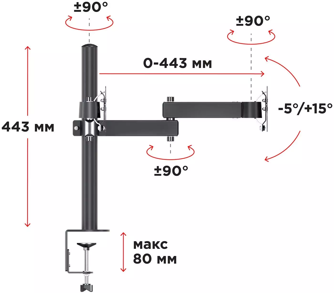 Кронштейн для монитора Holder MDS-SU203-B, настольный, поворот и наклон верт.перемещ., черный