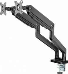 • Особенности Настольный кронштейн с двумя креплениями под мониторы. Пружинный механизм позволяет легко перемещаться вверх и вниз.