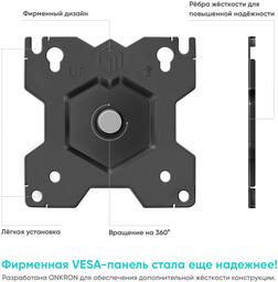 Кронштейн для монитора Onkron D101E, настольный, поворот и наклон, черный