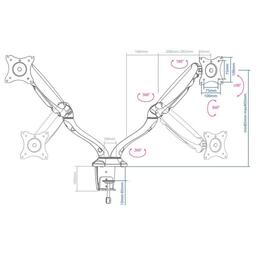 ОписаниеНезависимая регулировка каждого экрана - мониторы на кронштейнах можно поворачивать вокруг своей оси на 360°, наклонять вверх и вниз, придвигать или удалять от себя. Два варианта установки на столешницу: за край стола и на поверхность стола.