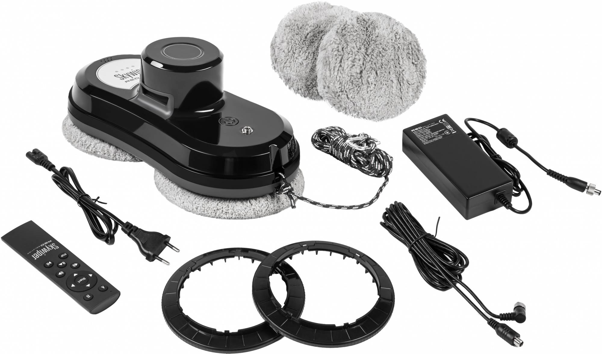 Комплектацияробот-мойщик окон, сетевой адаптер, сетевой шну, удлинитель сетевого шнура, пульт дистанционного управления, элемент питания R03 (AAA), съемные кольца для мопов, мопы из микрофибры, страховочный трос с карабином, руководство по эксплуатации, сервисная книжка