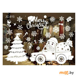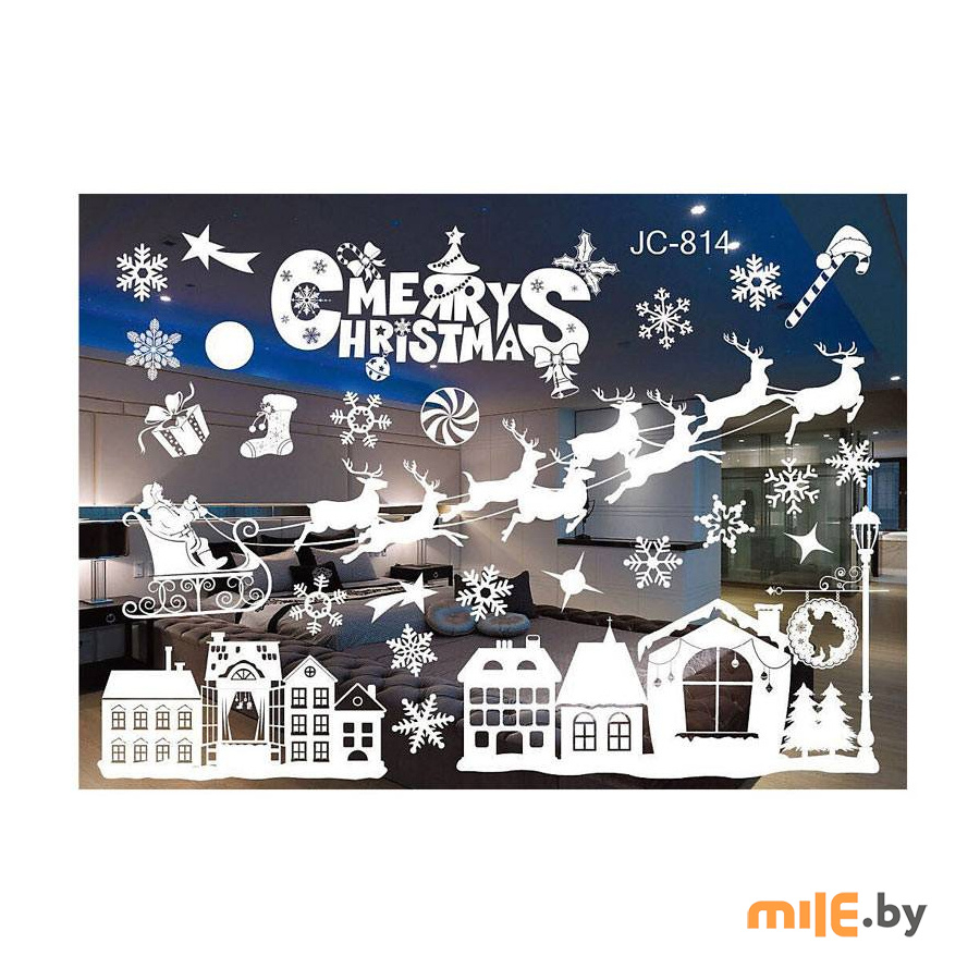 Наклейка декоративная Композиция Нового Года на окно без клейкого слоя, многоразового использования.