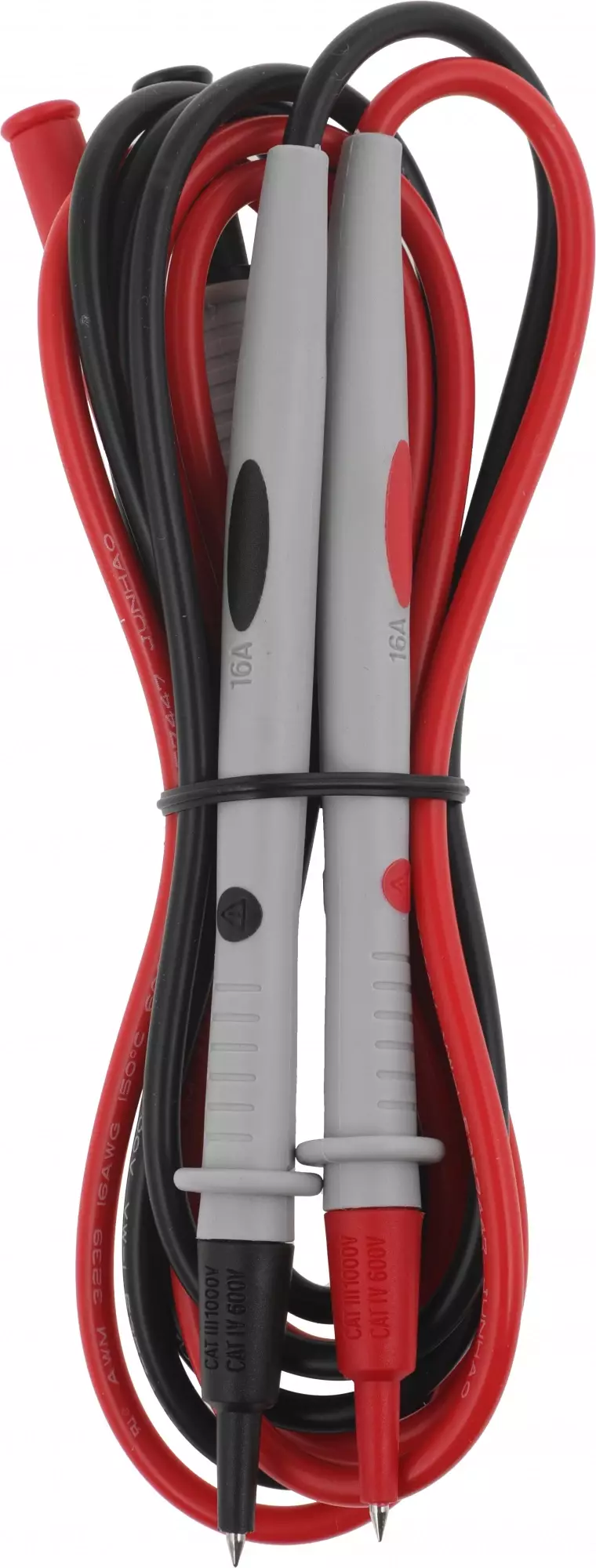 ОписаниеКомплект измерительных проводов RGK TP2-03 включает в себя пару гибких проводников черного и красного цвета в силиконовой изоляции. Оба кабеля оснащены несъемными щупами длиной 133 мм., на конце каждого из которых установлен 18-миллиметровый игольчатый наконечник.