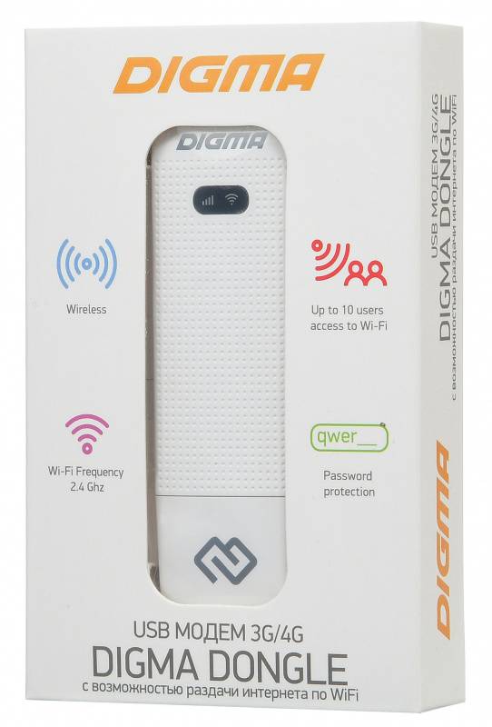 Модем 3G/4G Digma Dongle Wi-Fi DW1961 USB белый (DW1961-WT)