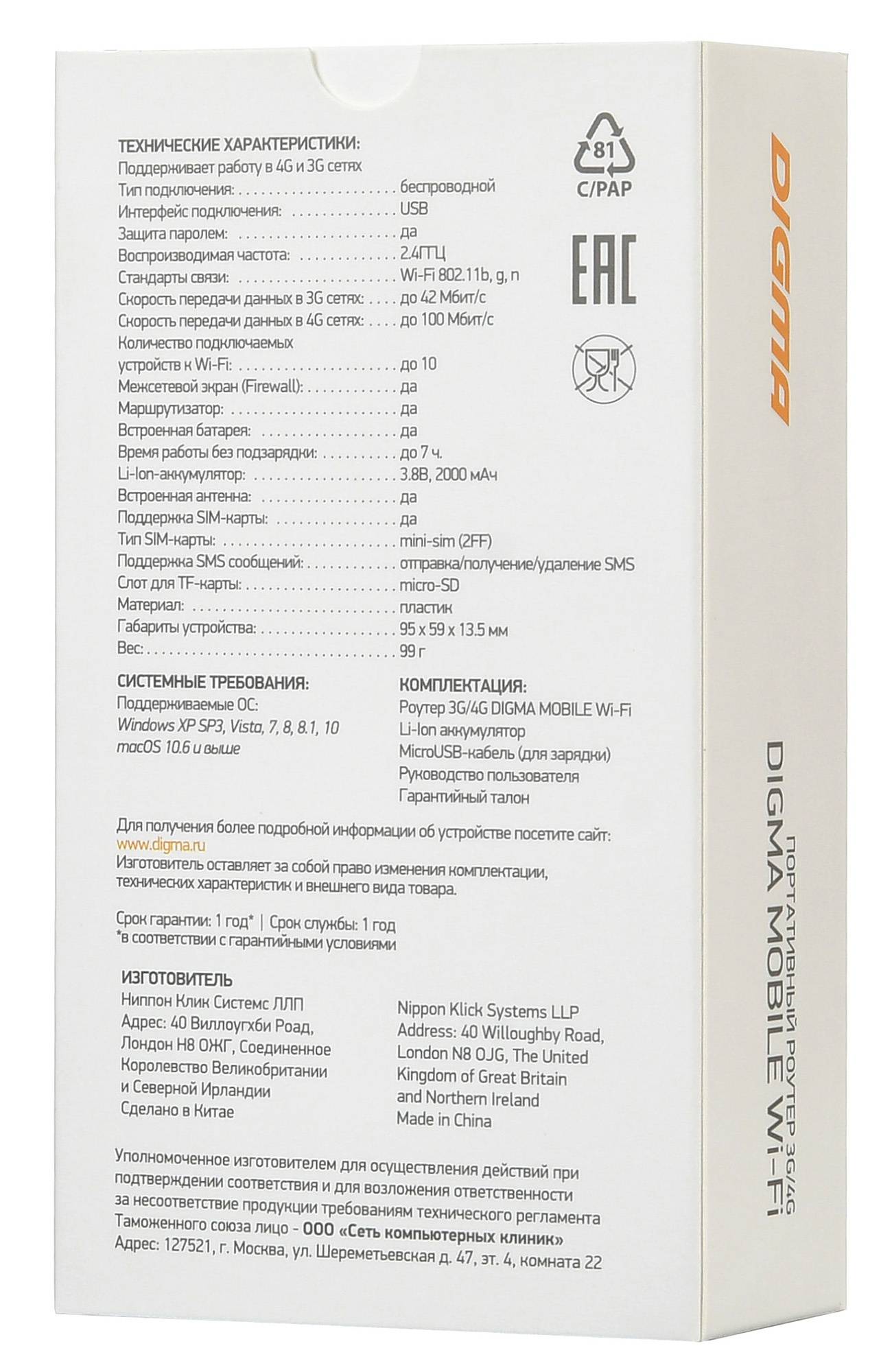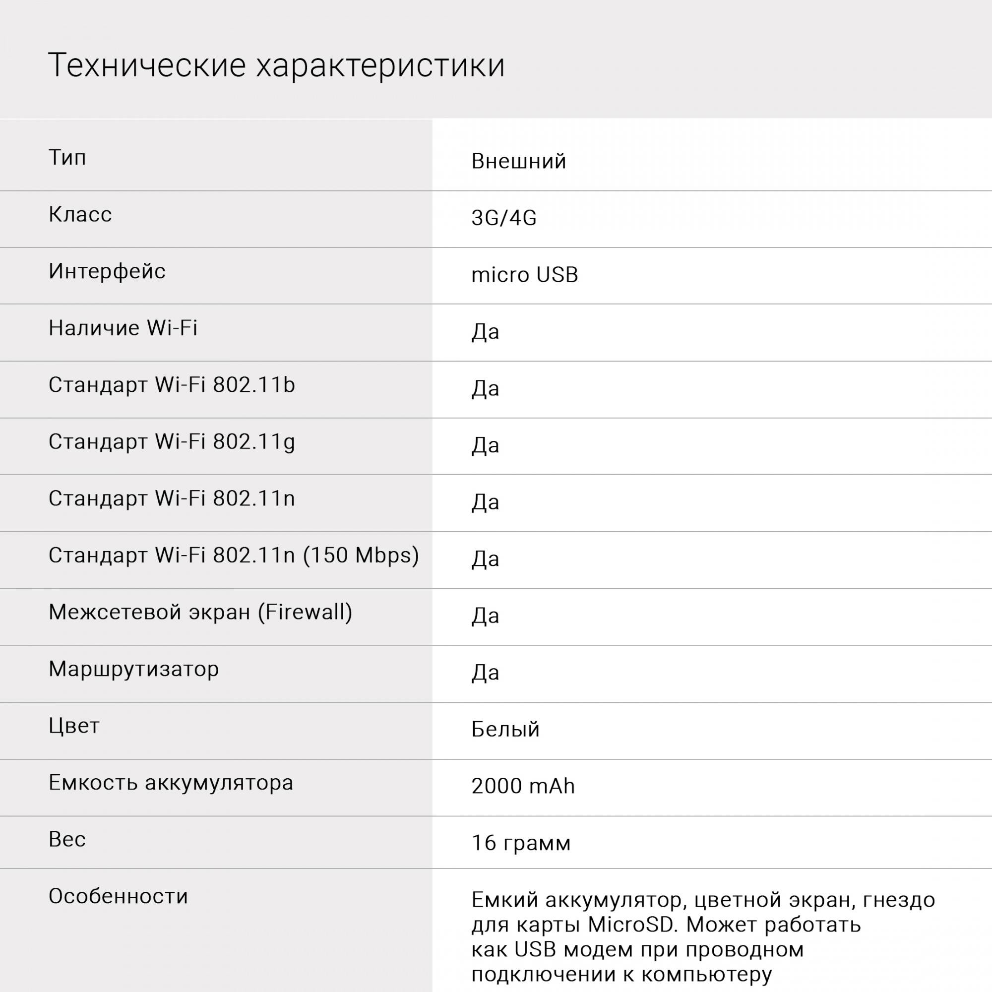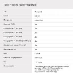 ОсобенностиПоддержка диапазонов B1/B3/B7/B20/B38,Емкий аккумулятор, цветной экран,картридер для карты памяти MicroSD. Может работать как USB модем при проводном подключении к компьютеру