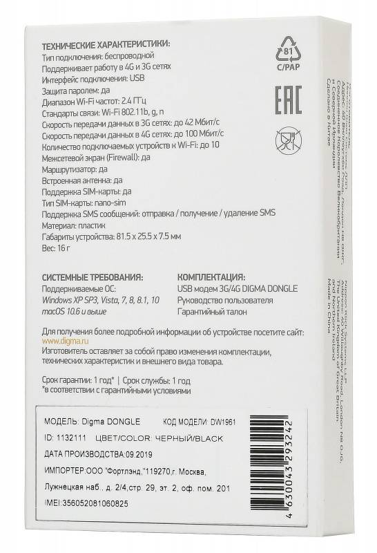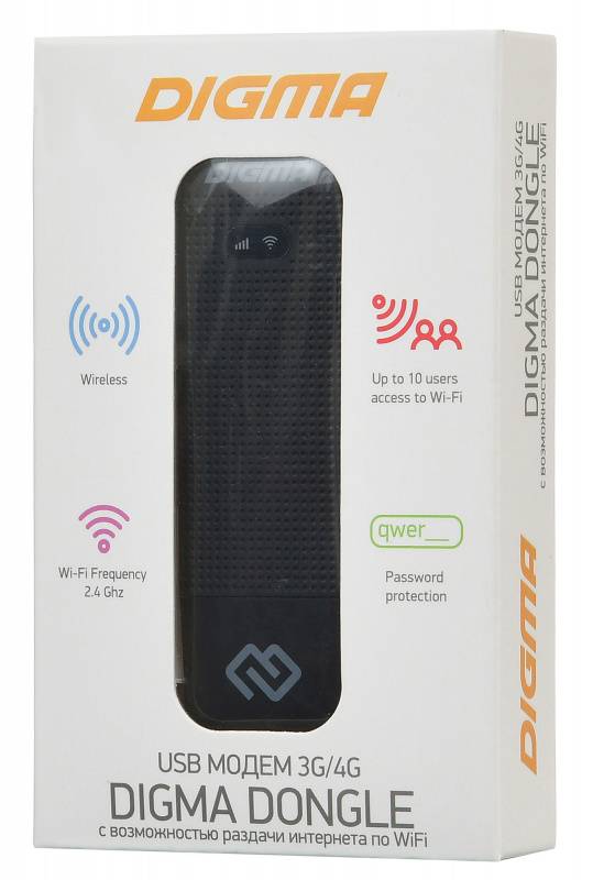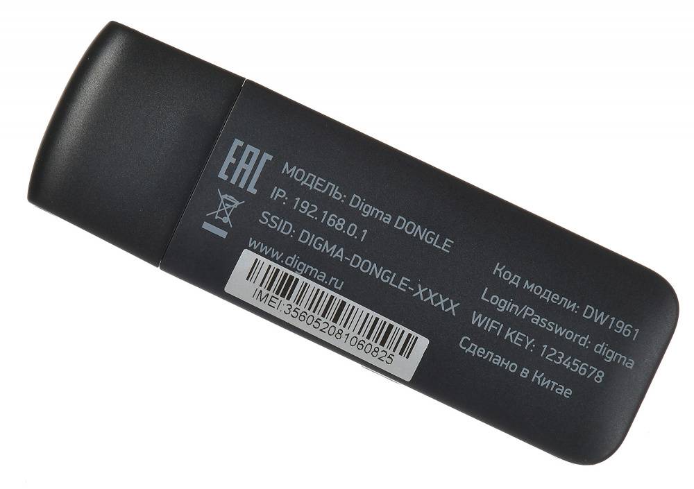 Модем 3G/4G Digma Dongle Wi-Fi DW1961 USB черный (DW1961-BK)