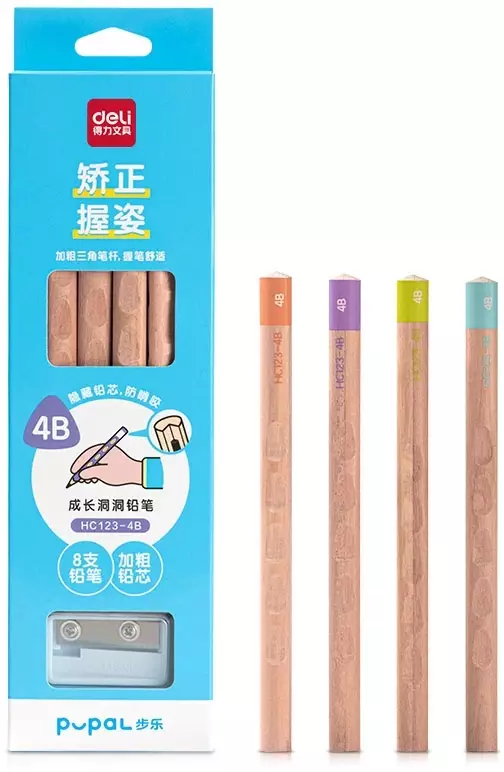 • Описание Чернографитный карандаш Deli HC123-4B, мягкость 4B, эргономичный дизайн, с точилкой, 8 штук в упаковке