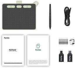 - Особенности Parblo Ninos имеют несколько цветовых решений: чёрный, зеленый и розовый. Parblo Ninos совместим со многими популярными графическими редакторами: Photoshop, SAI, Painter, Illustrator, Clip Studio, Crita и другими. В комплекте 2 OTG-переходника на USB Type-C и Micro.