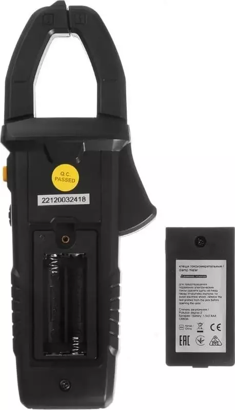 • Комплект поставки Токоизмерительные клещи, сумка для хранения, тестовые щупы, батарейка 1,5 В типа ААА - 2 шт., инструкция, упаковка.