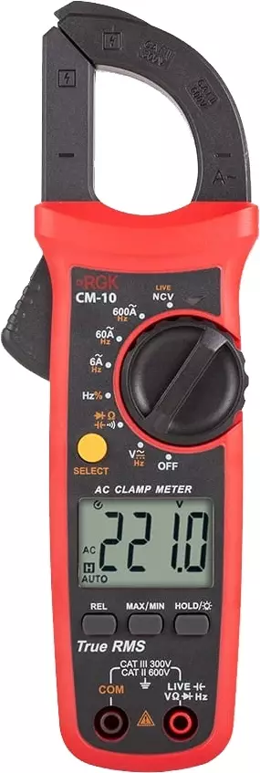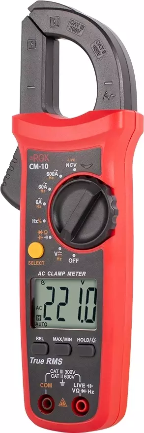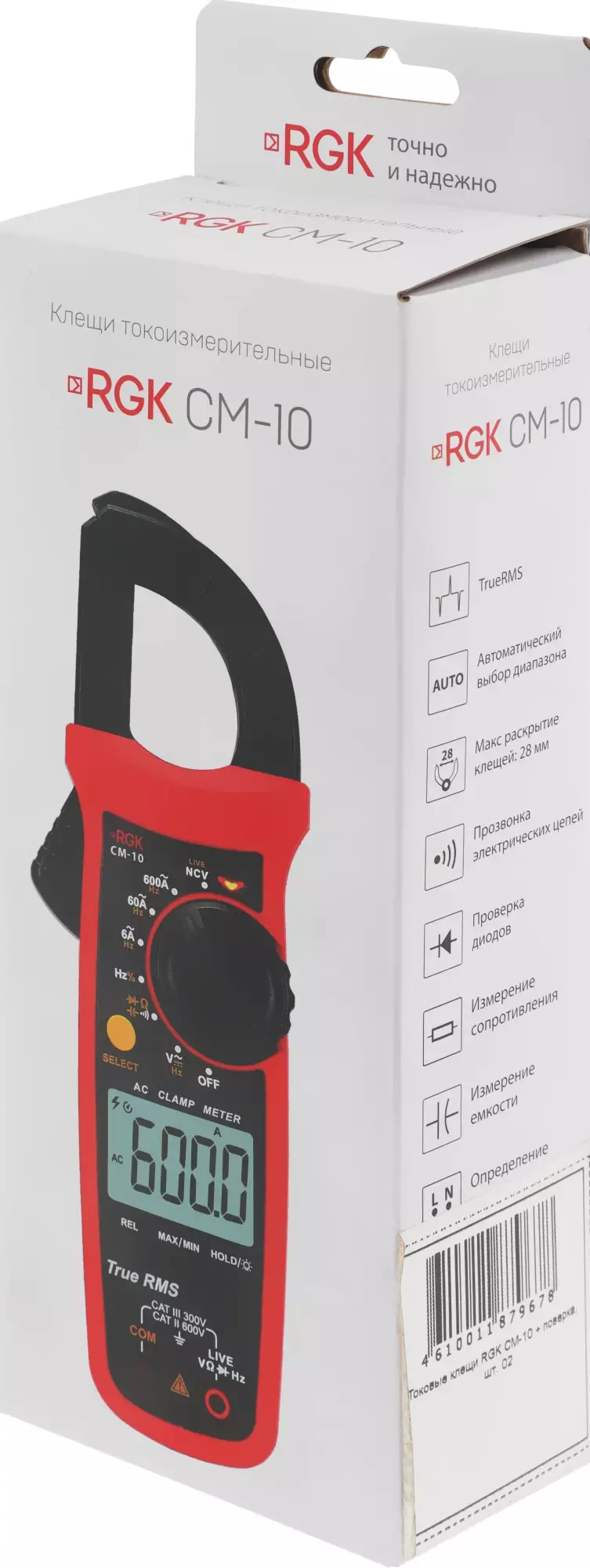 ОписаниеЦифровые токовые клещи RGK CM-10 с поверкой - это удобный и безопасный прибор для измерения больших значений силы переменного тока вплоть до 600А, дополнительно снабженный функциями мультиметра. Максимальный диаметр проводников, с которыми может работать эта модель - 28 мм.
