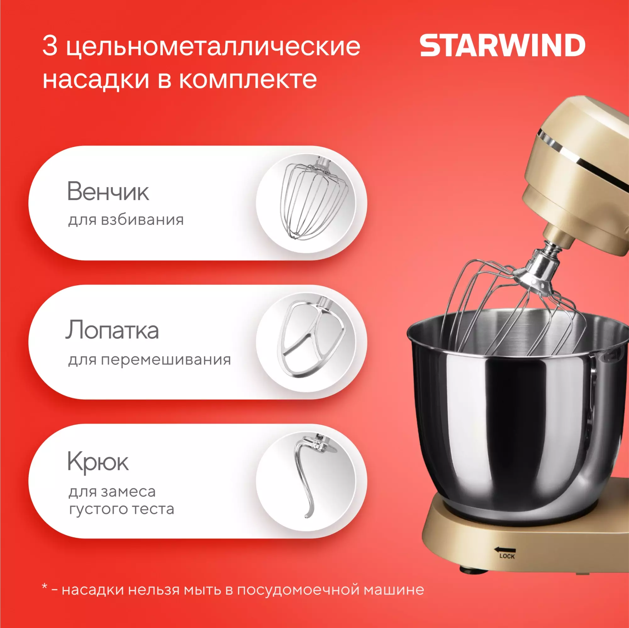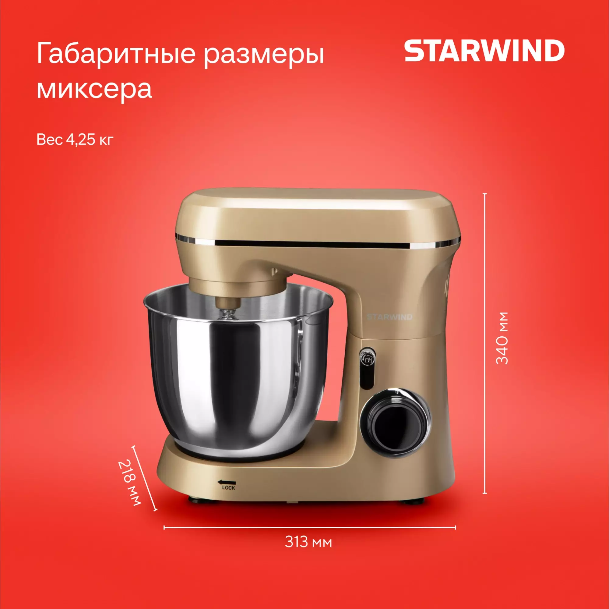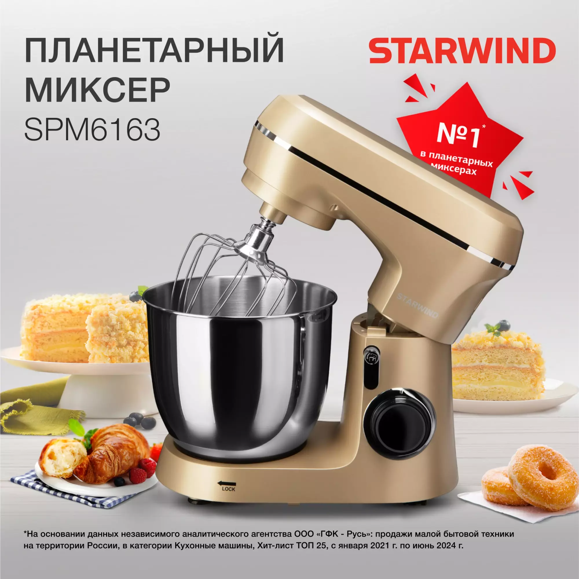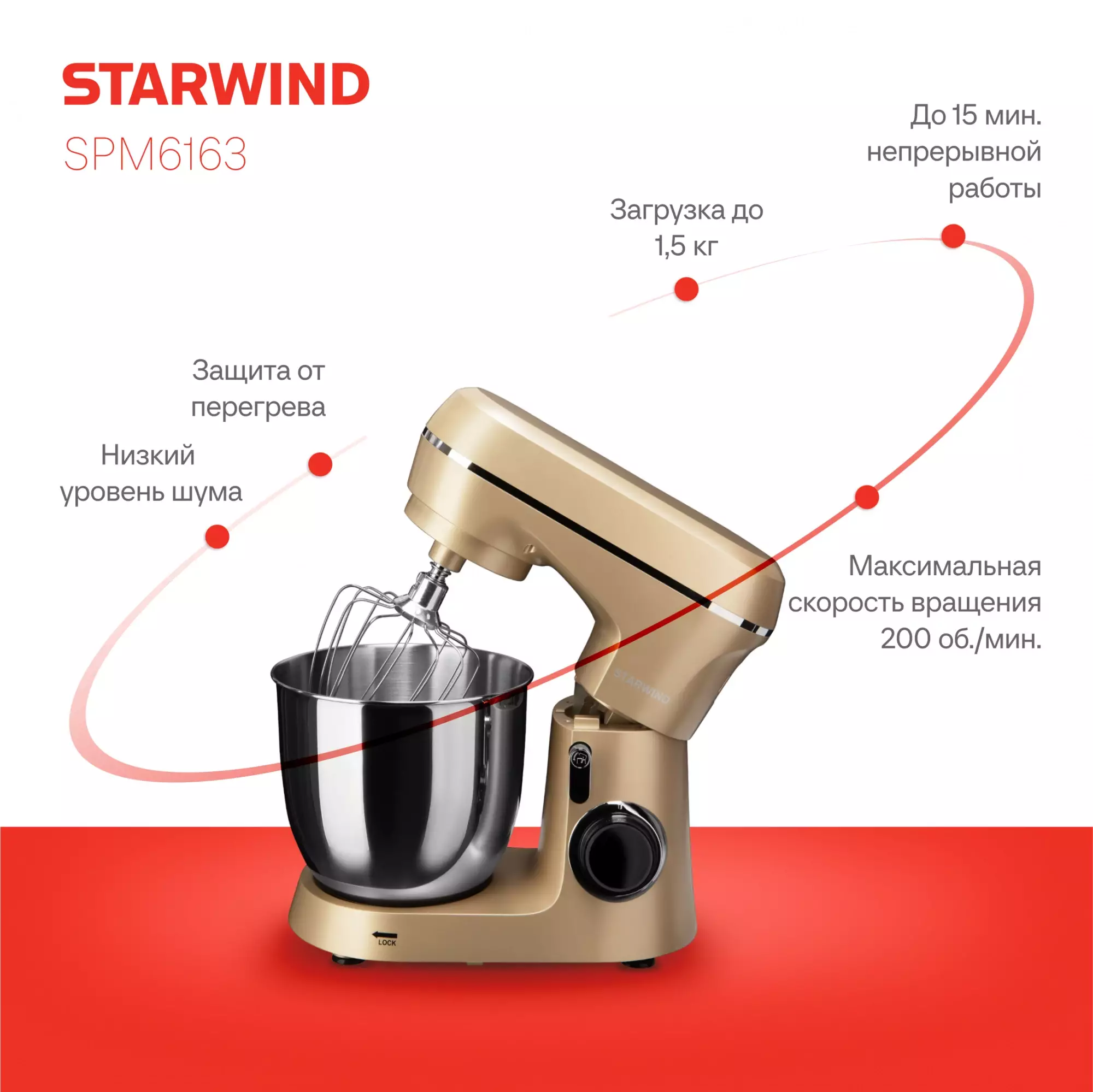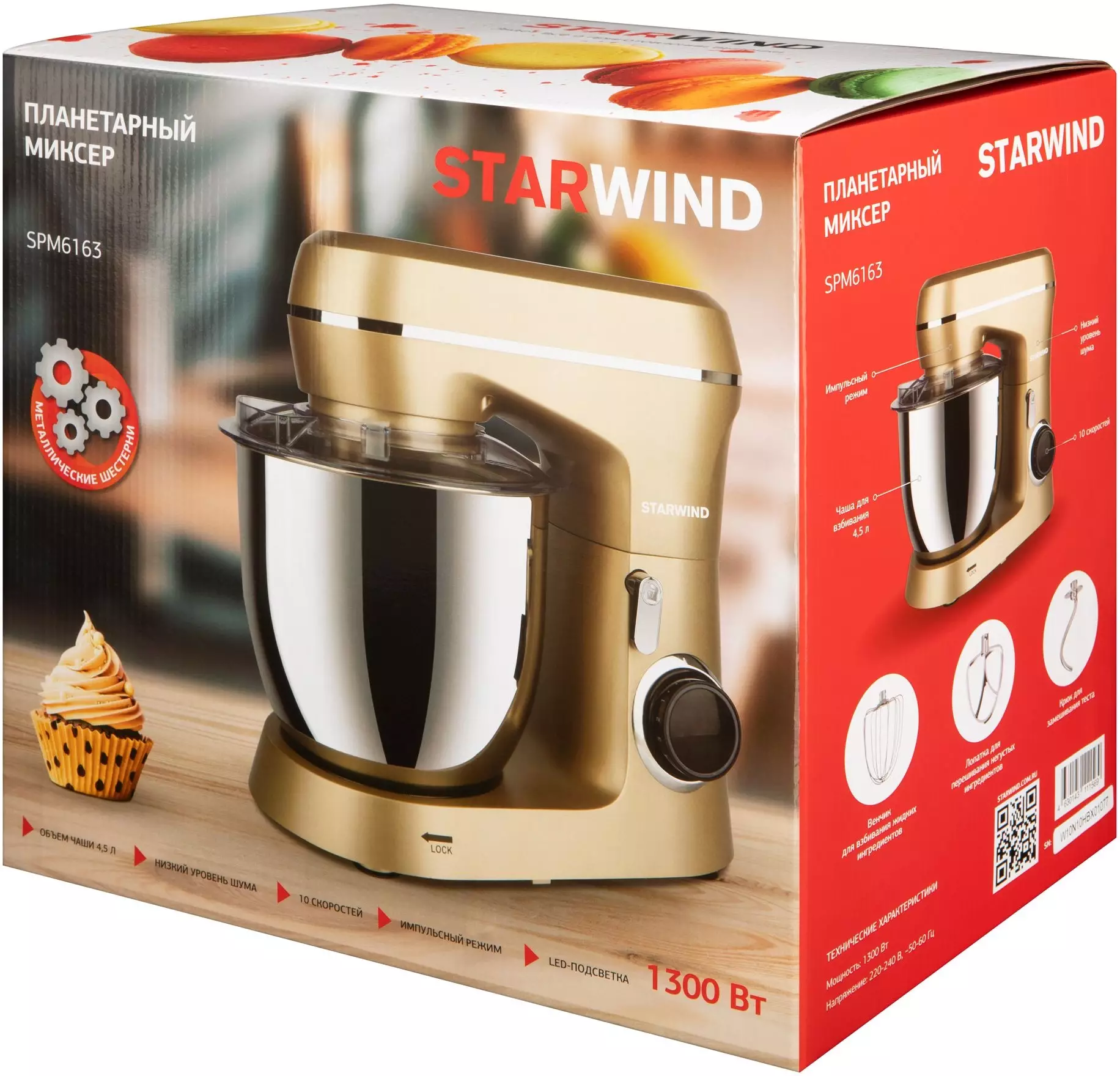 Миксер планетарный Starwind SPM6163 золотистый
