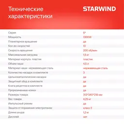• Объем чаши 4.5 л