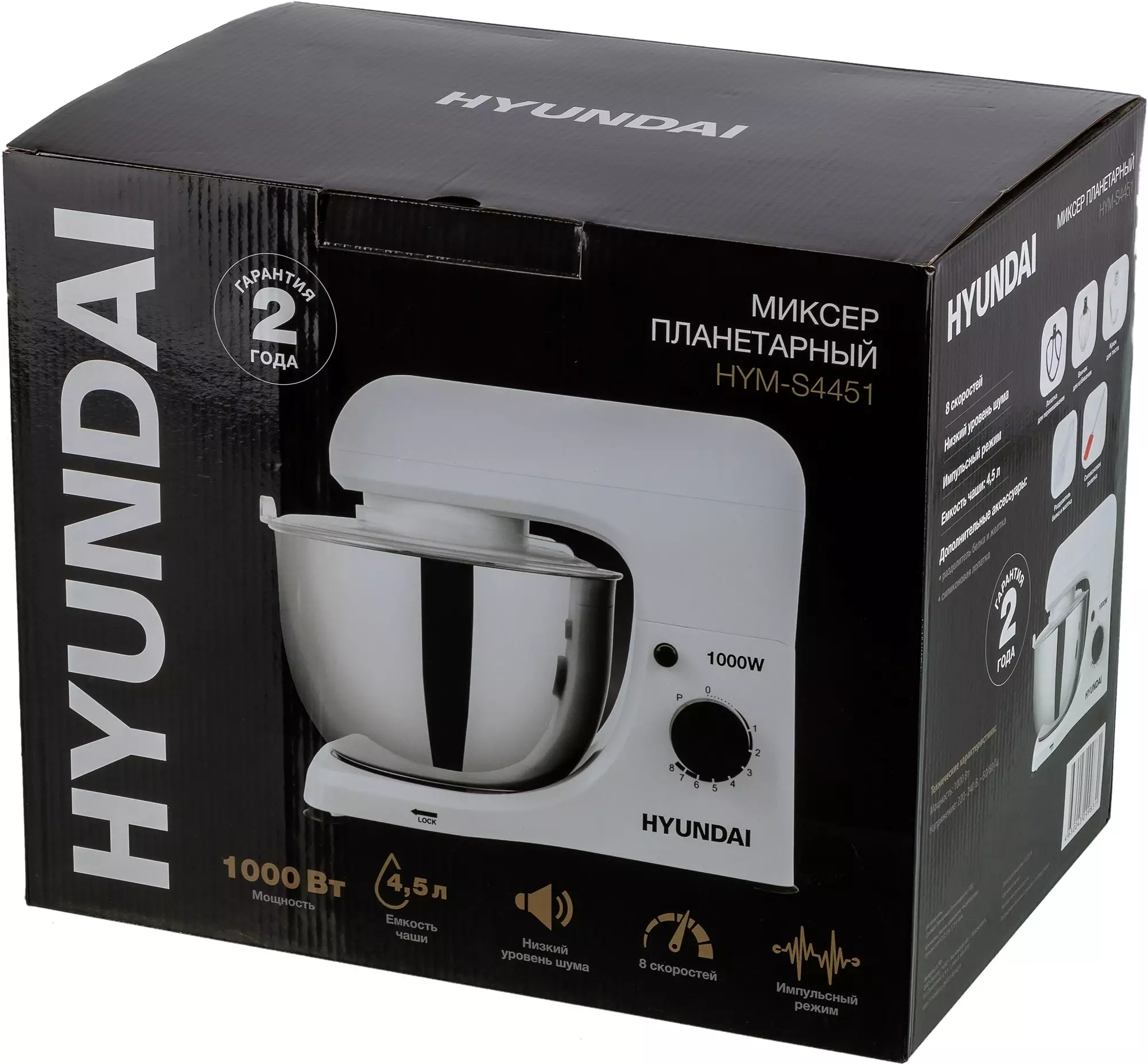 Миксер планетарный Hyundai HYM-S4451 белый/черный