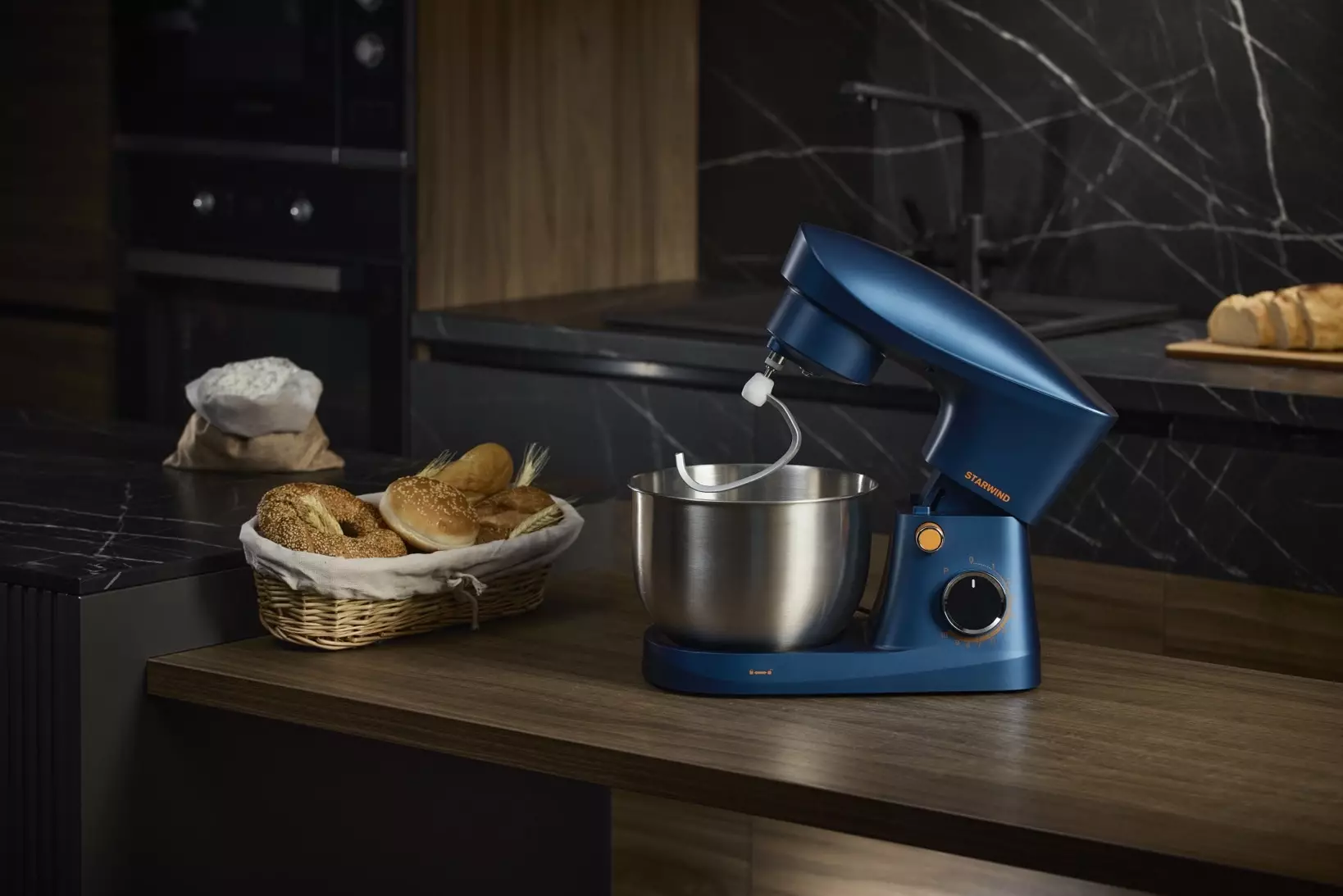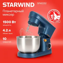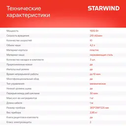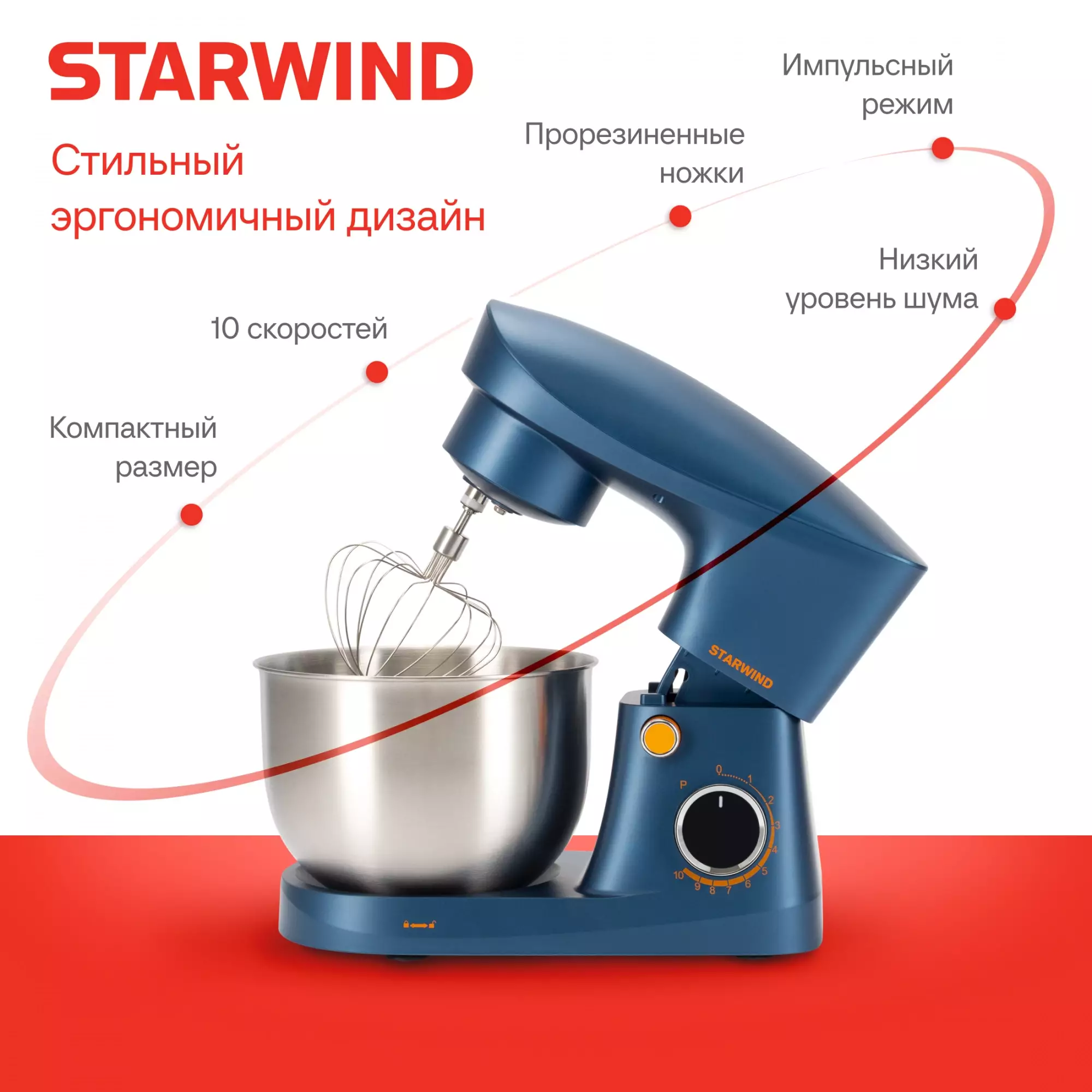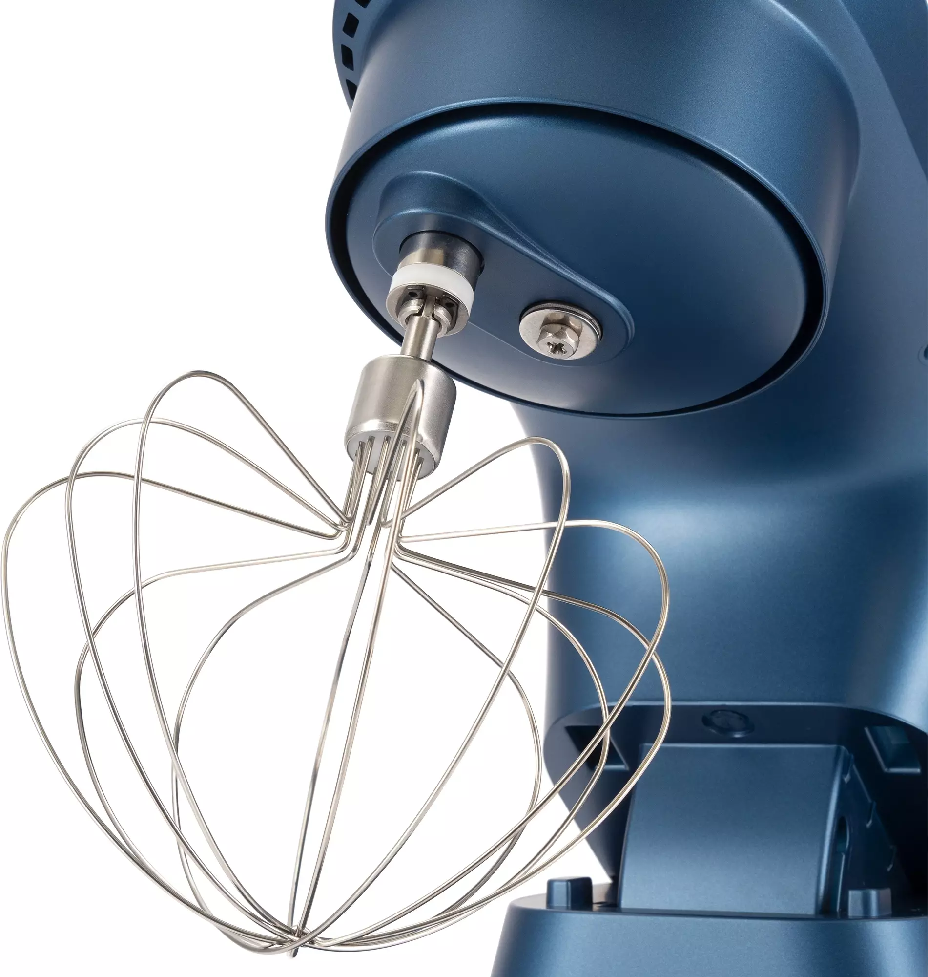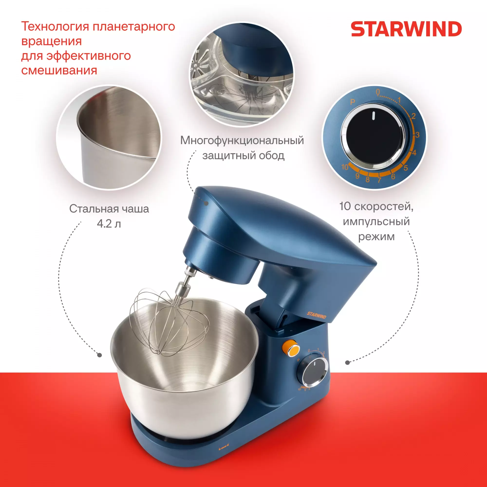 КомплектацияМиксер; чаша; насадка-крюк; насадка-венчик; насадка-лопатка; инструкция с гарантийным талоном; книга рецептов; мультифункциональный защитный обод