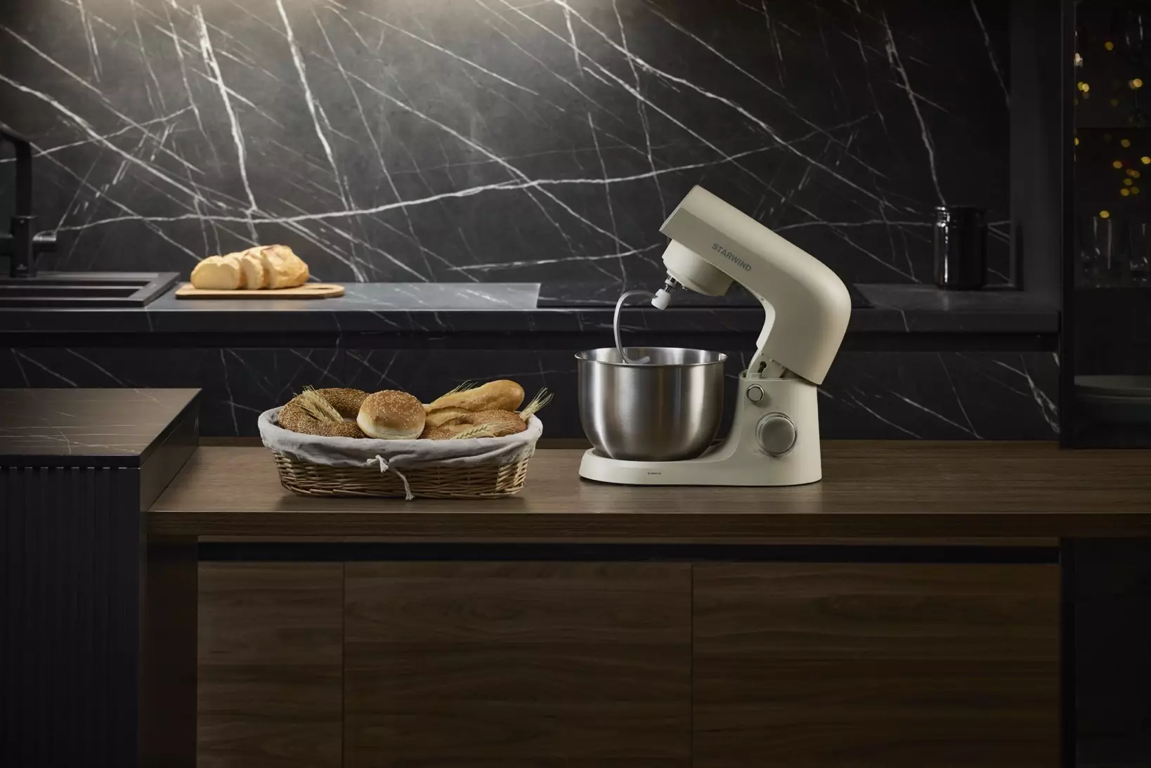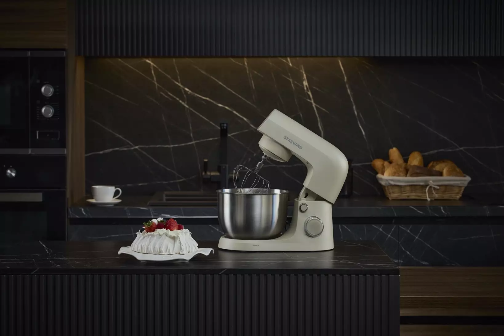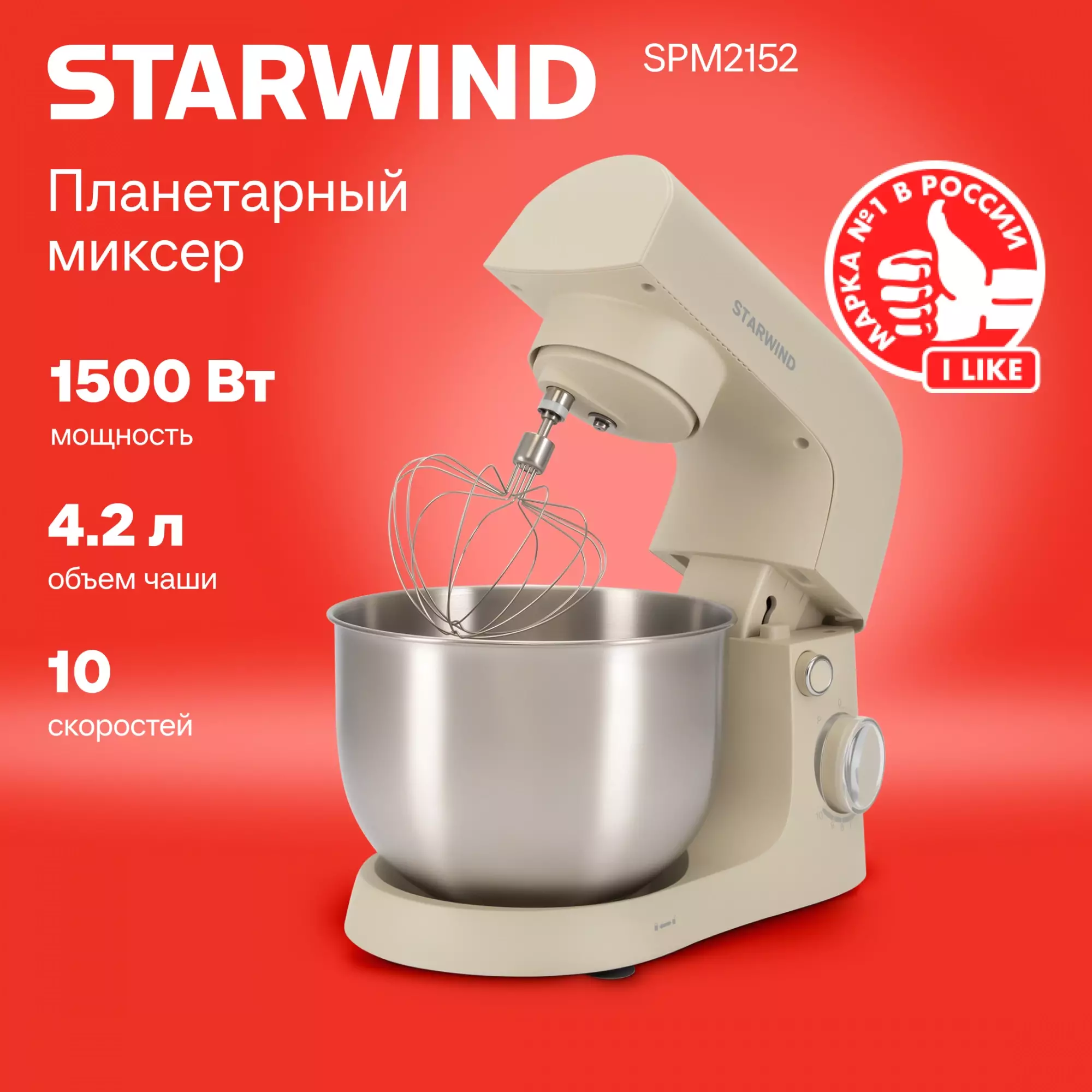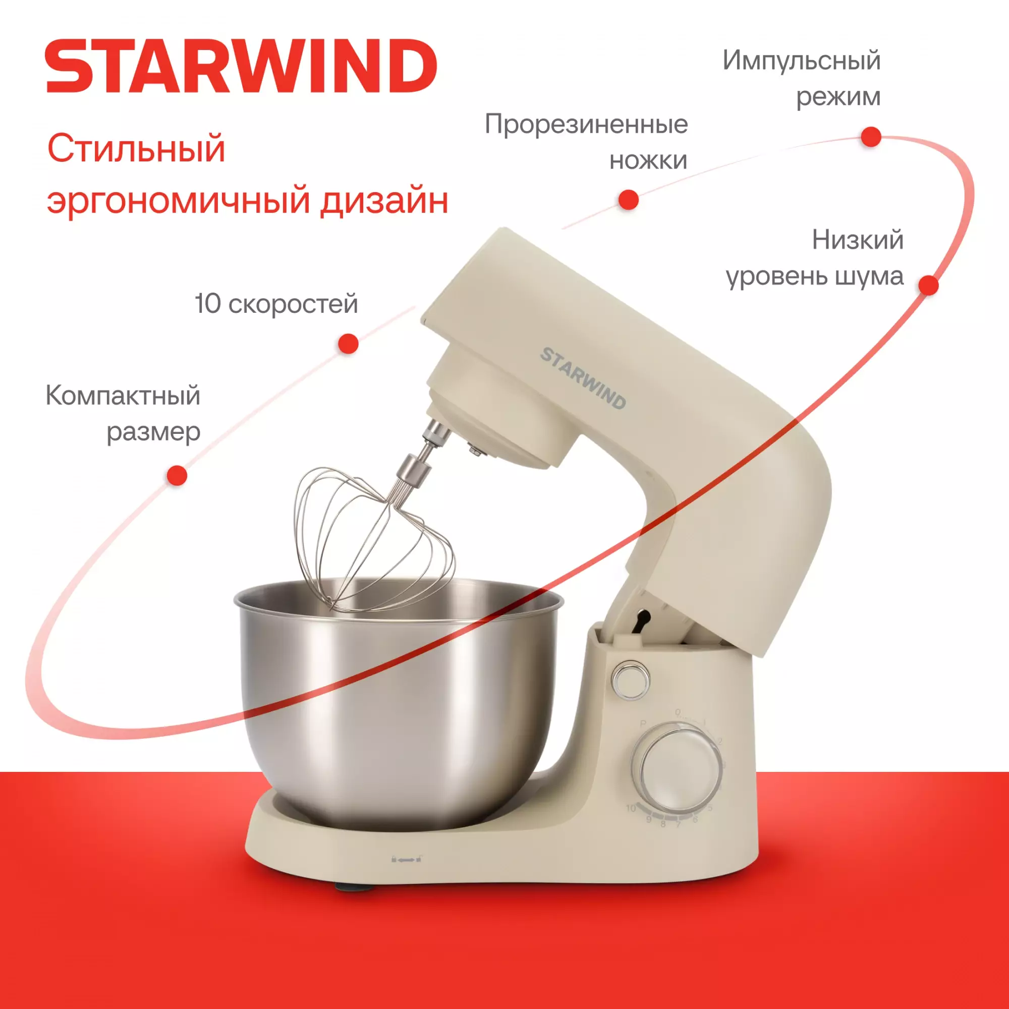 КомплектацияМиксер; насадка-крюк; насадка-венчик; насадка-лопатка; инструкция с гарантийным талоном; книга рецептов; мультифункциональный защитный обод