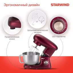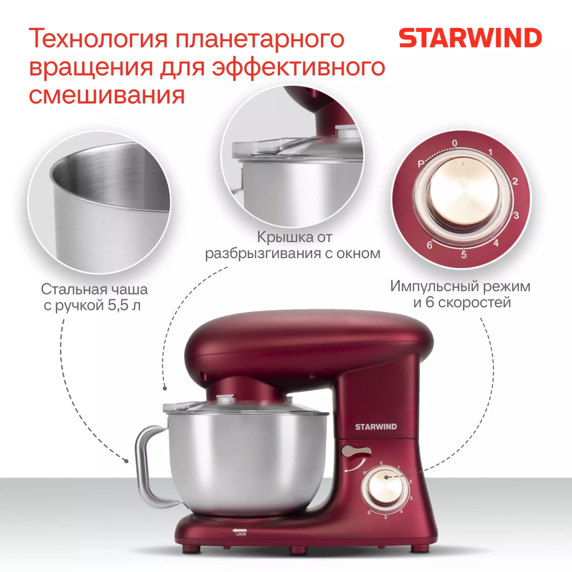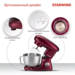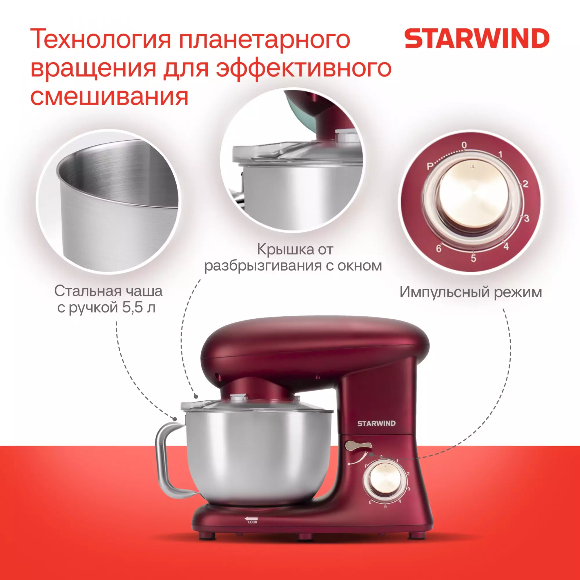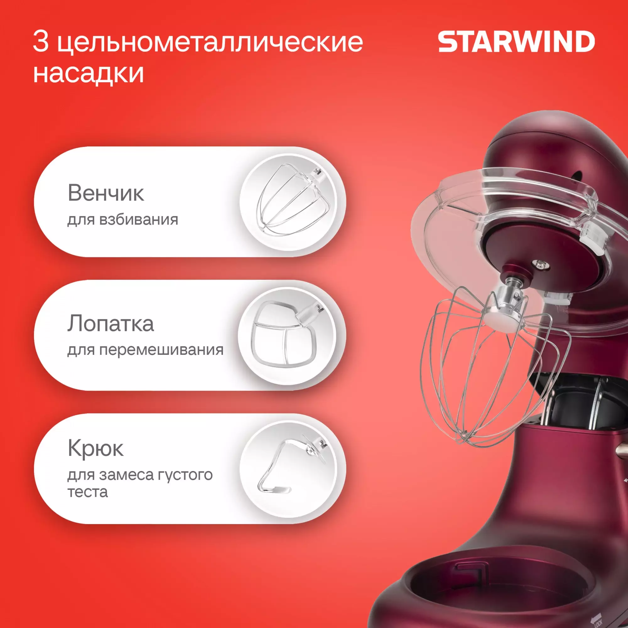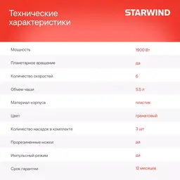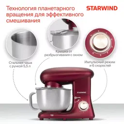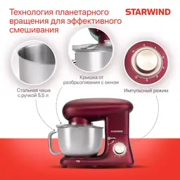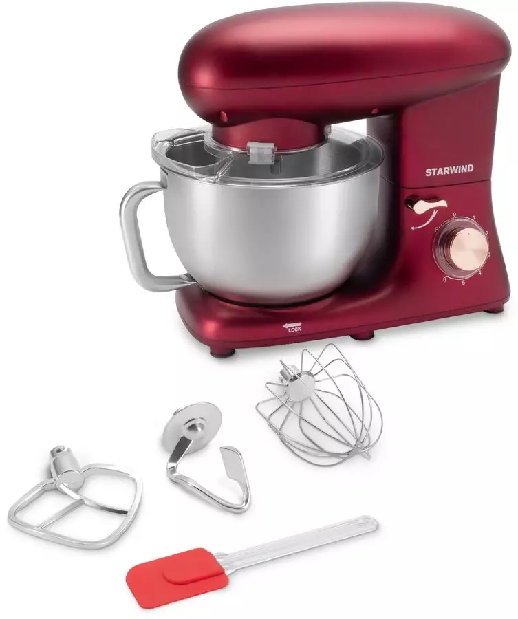 • Комплектация Миксер; чаша; защитная крышка; насадка-венчик; насадка-лопатка; насадка-крюк; кулинарная силиконовая лопатка; инстуркция с гарантийным талоном; книга рецептов