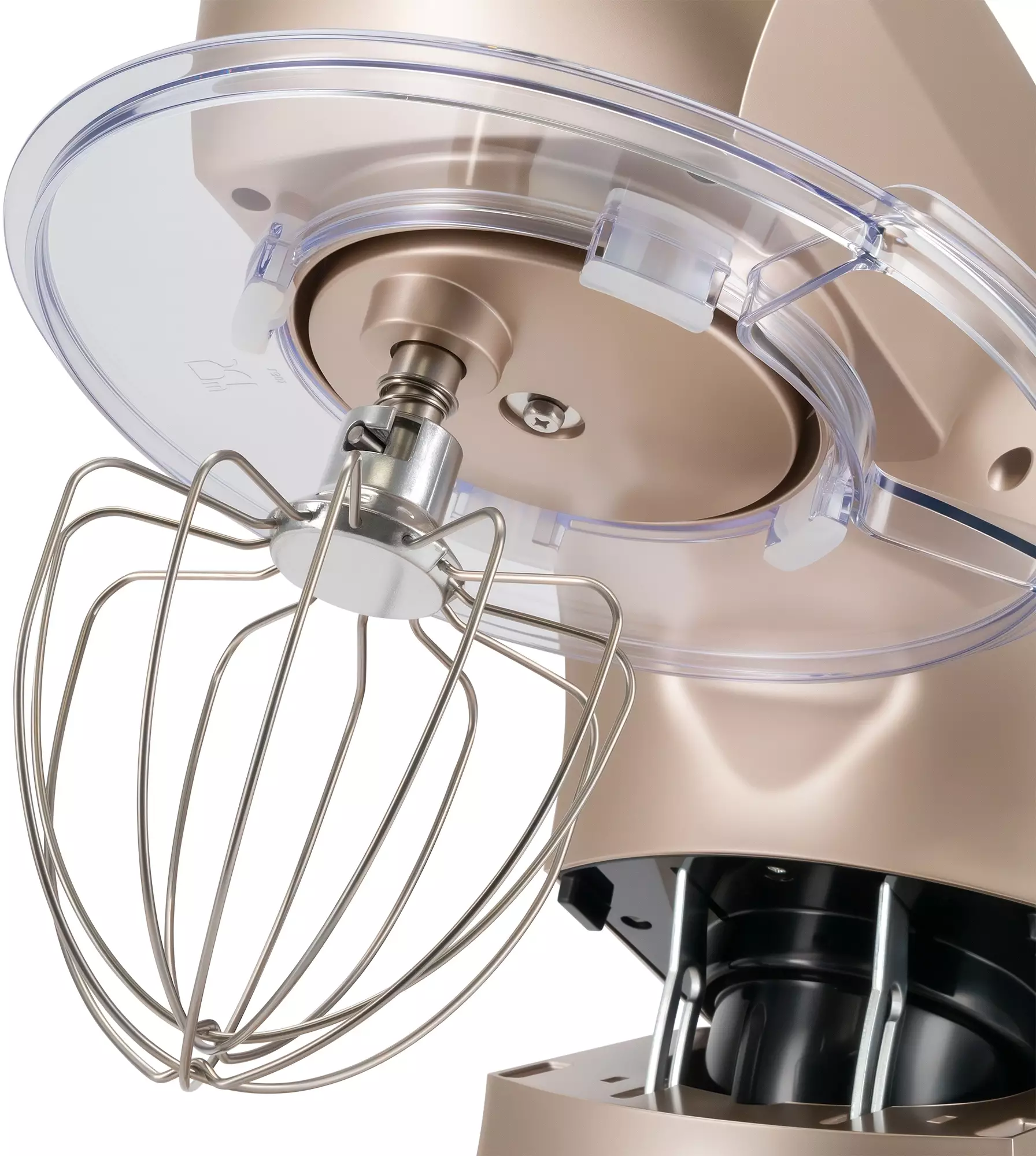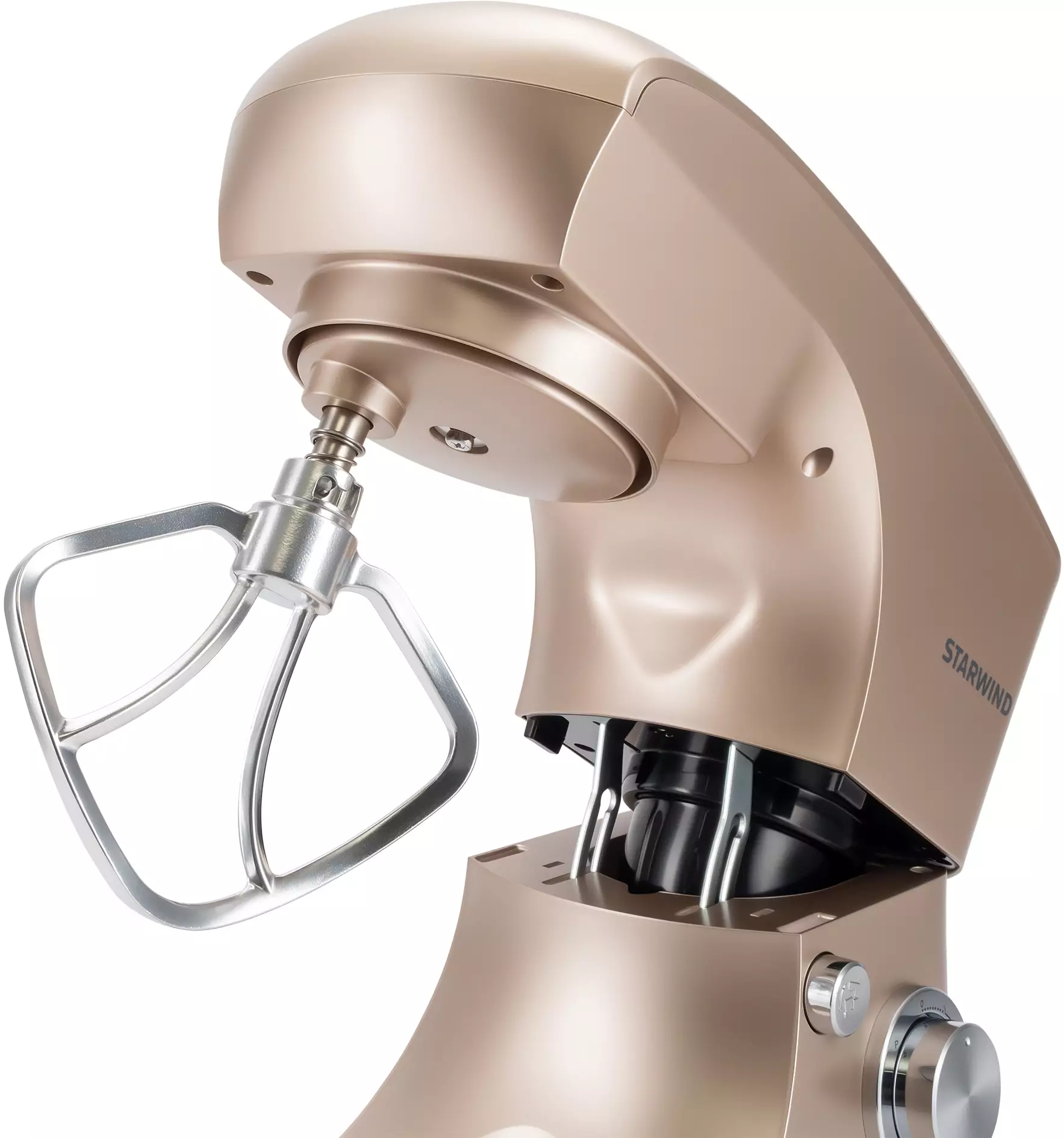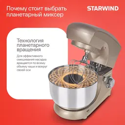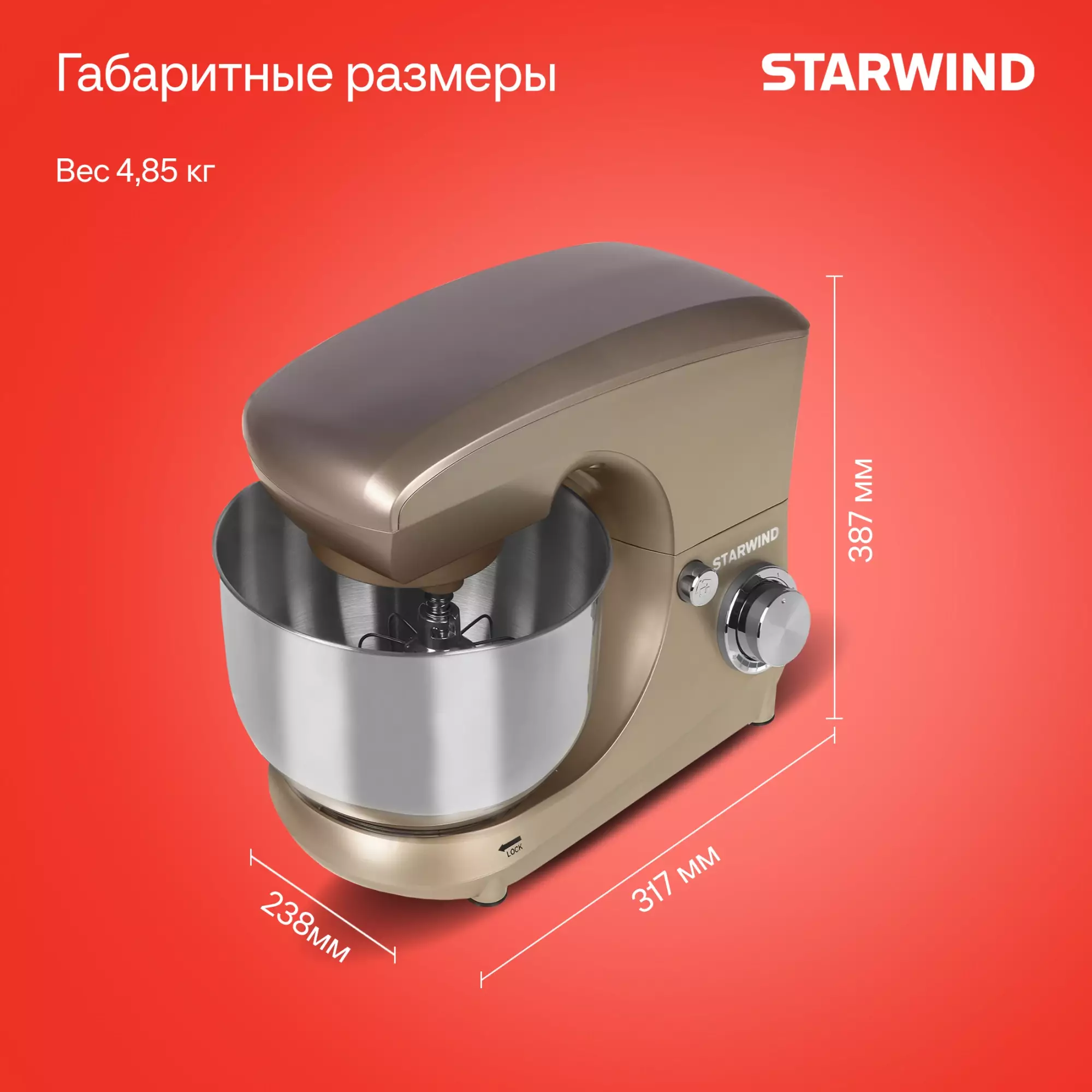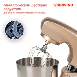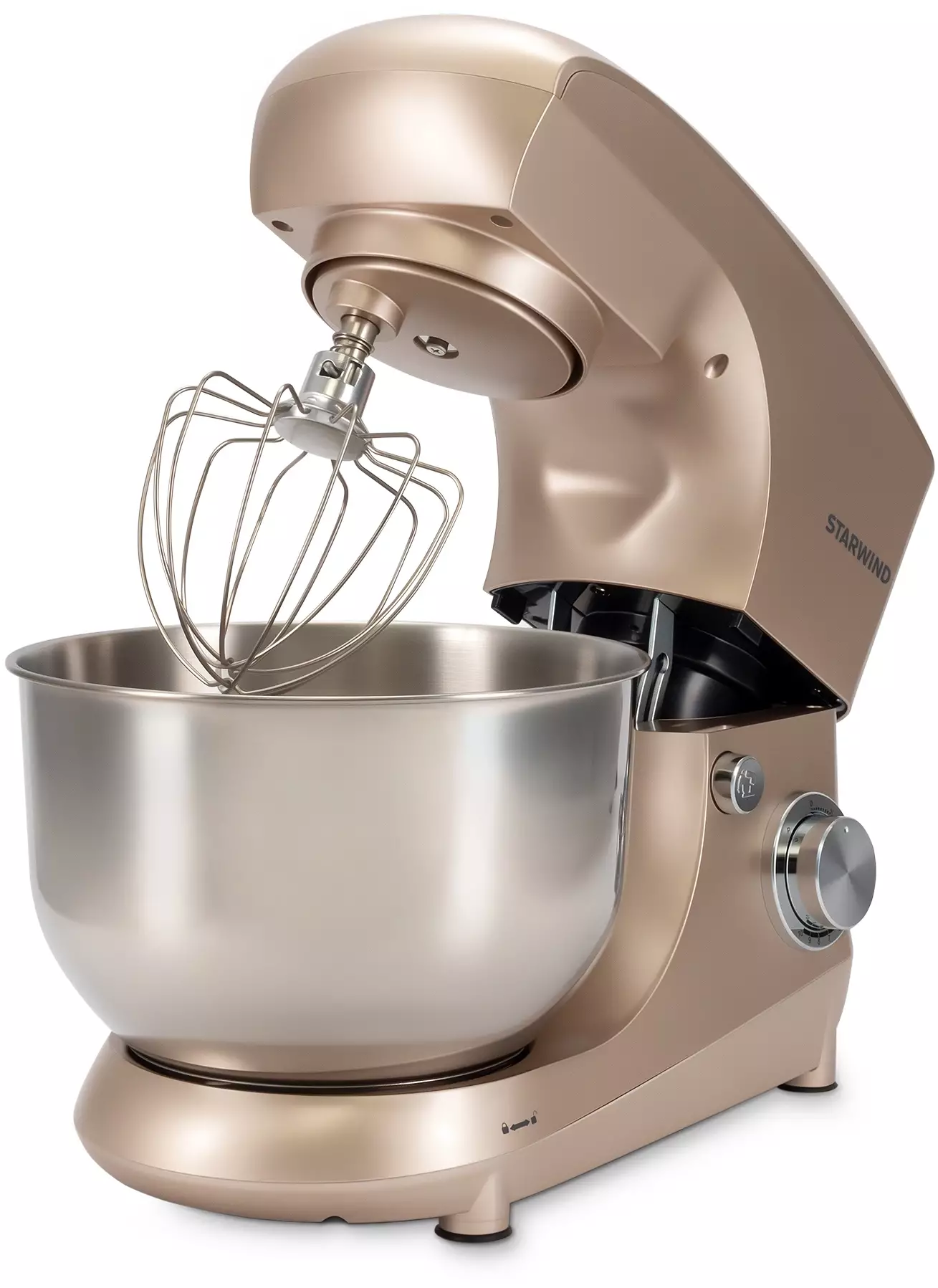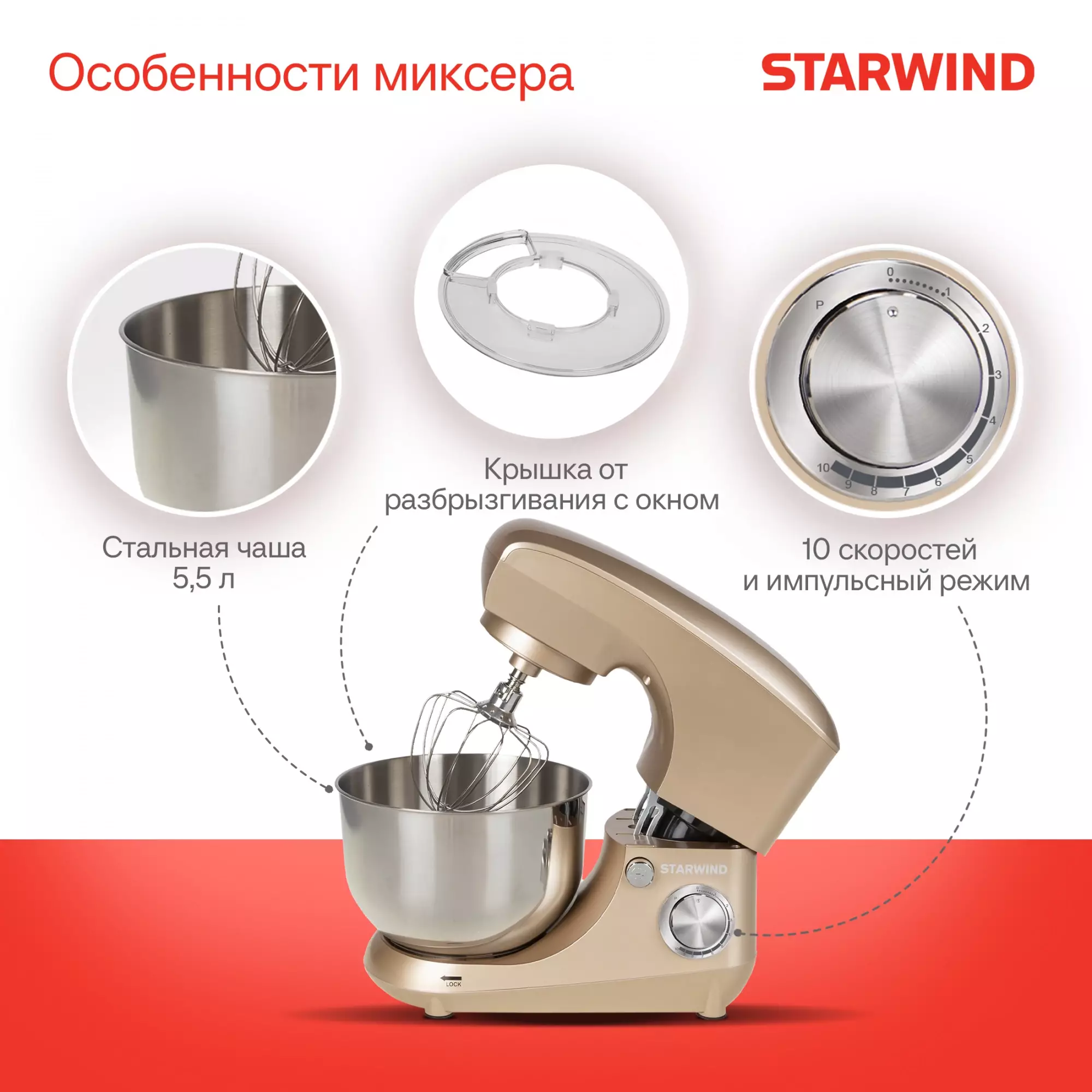 КомплектацияМиксер; чаша; защитная крышка для чаши; насадка-венчик; насадка-лопатка; насадка-крюк; руководство пользователя с гарантийным талоном; книга рецептов