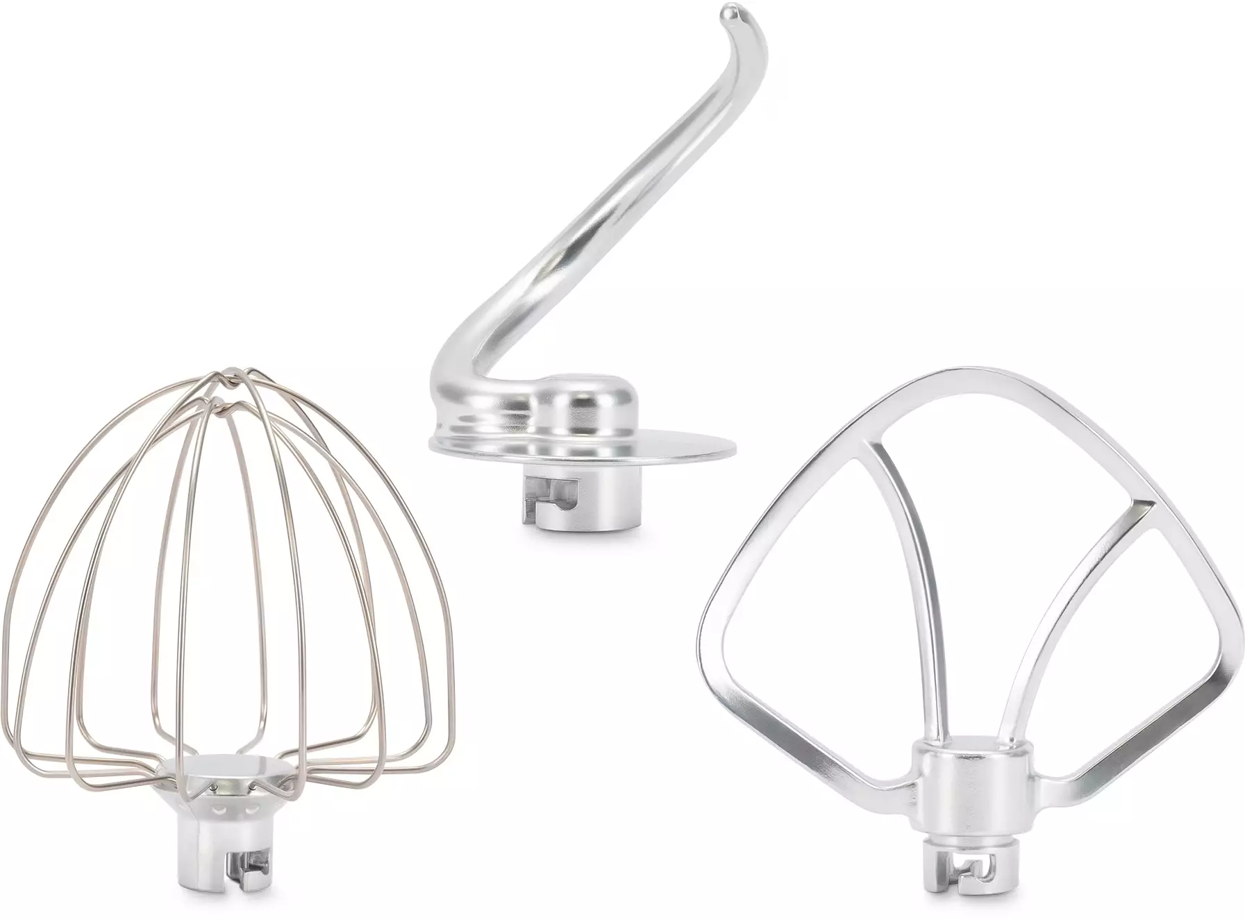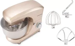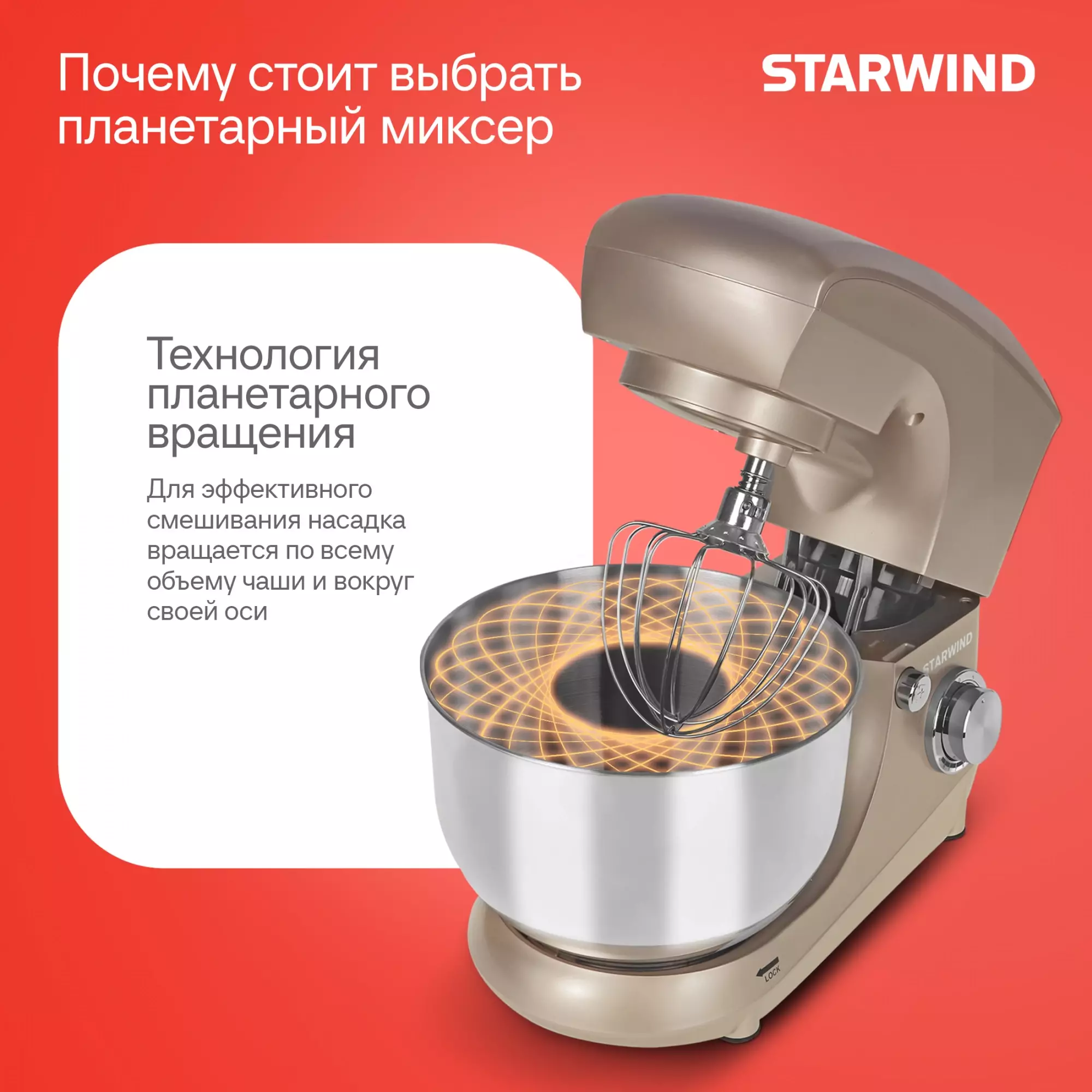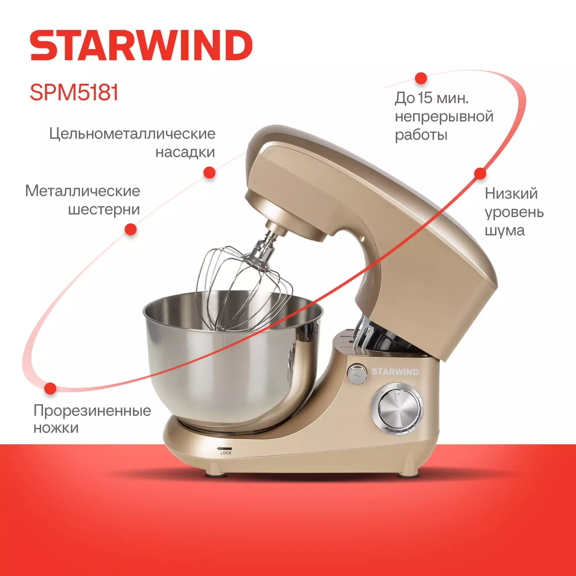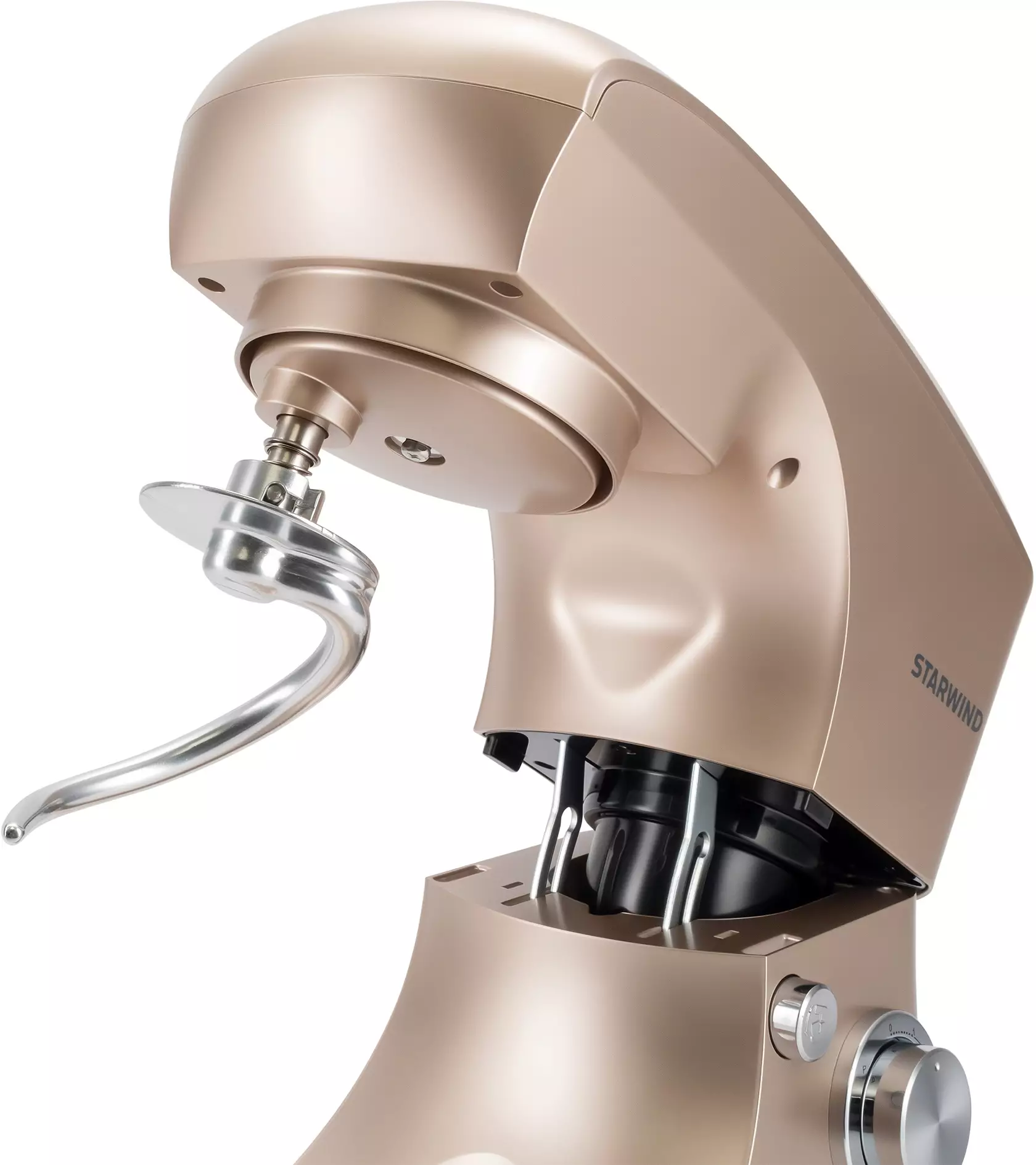 КомплектацияМиксер; чаша; защитная крышка для чаши; насадка-венчик; насадка-лопатка; насадка-крюк; руководство пользователя с гарантийным талоном; книга рецептов