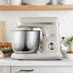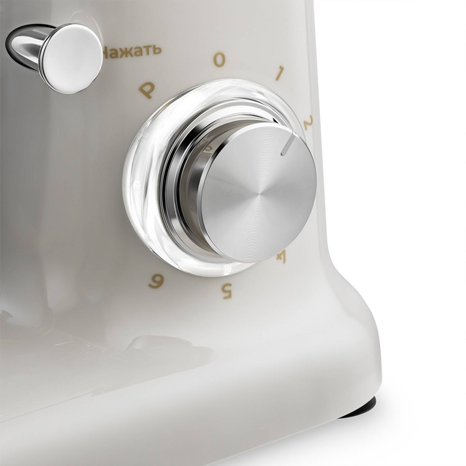 КомплектацияПланетарный миксер (моторный блок, чаша миксера, крышка чаши), венчик для взбивания, насадка для смешивания, крюк для замешивания, руководство по эксплуатации, коллекционный магнит* (*опционально)