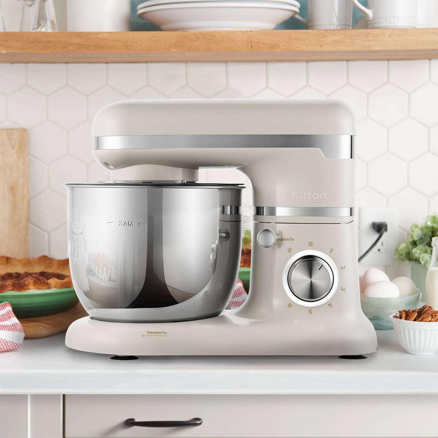 ОписаниеПланетарный миксер КТ-3422 с мощностью 1000 Вт и чашей на 5 л поможет вам смешать ингредиенты, взбить яичный белок или сливки, приготовить картофельное пюре, соус, крем, мусс, замесить жидкое тесто для блинов и крутое — для пельменей и пирогов.
