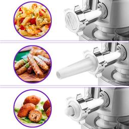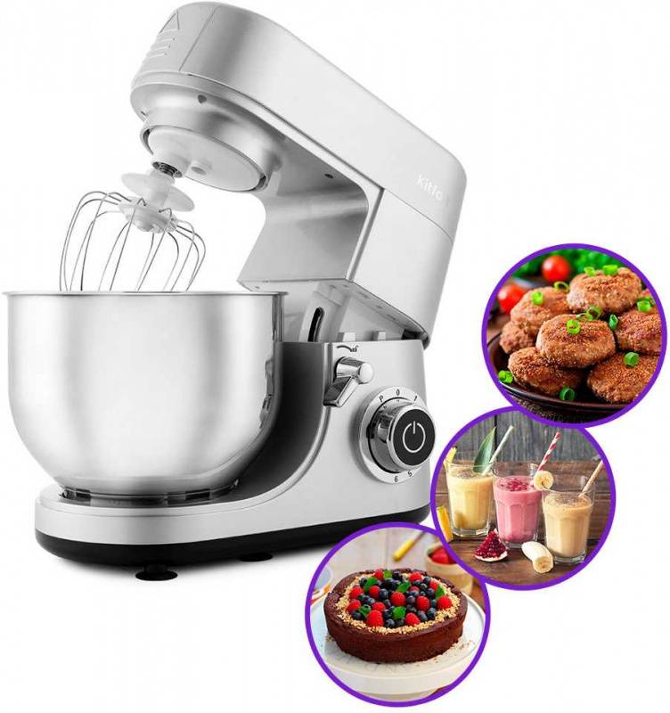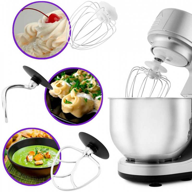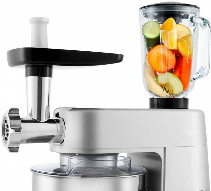 ОписаниеВ комплекте с планетарным миксером идут блендер и мясорубка, что делает его универсальным помощником на вашей кухне. Миксер замесит любое тесто, взобьёт пышный крем, а также превратит мясо в фарш (1,2 кг/мин) и смешает коктейль или смузи.
