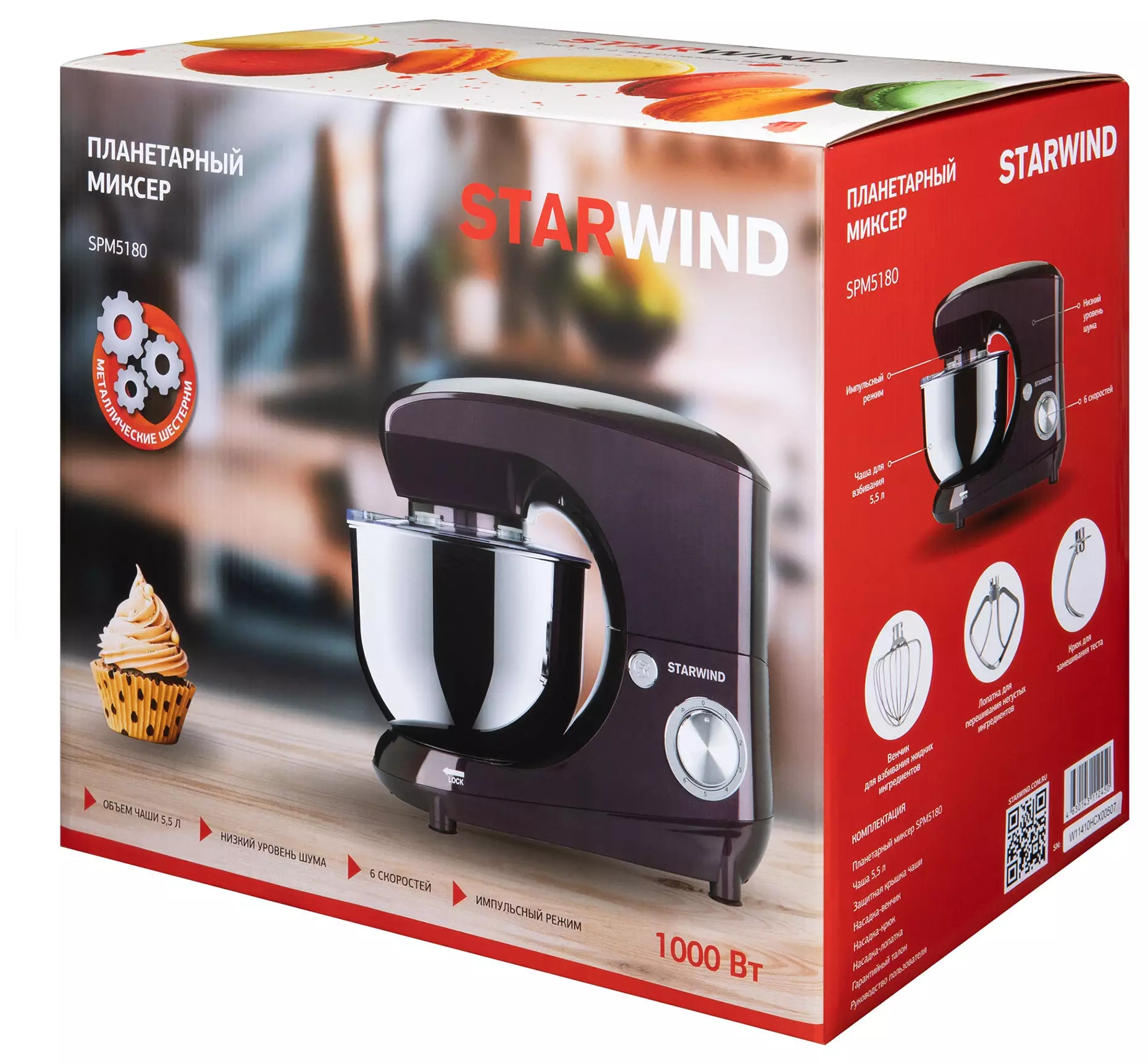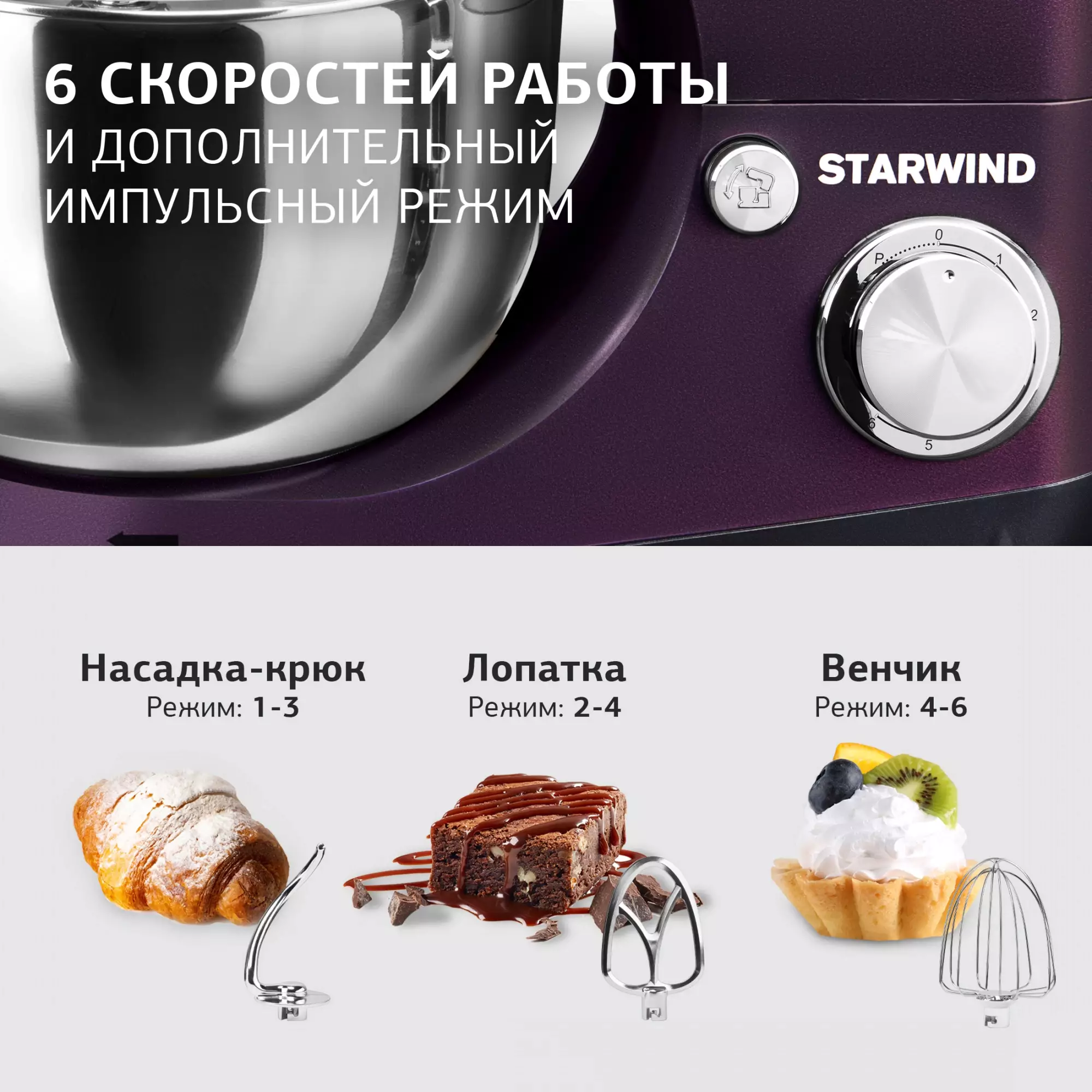 Миксер планетарный Starwind SPM5180 ежевичный