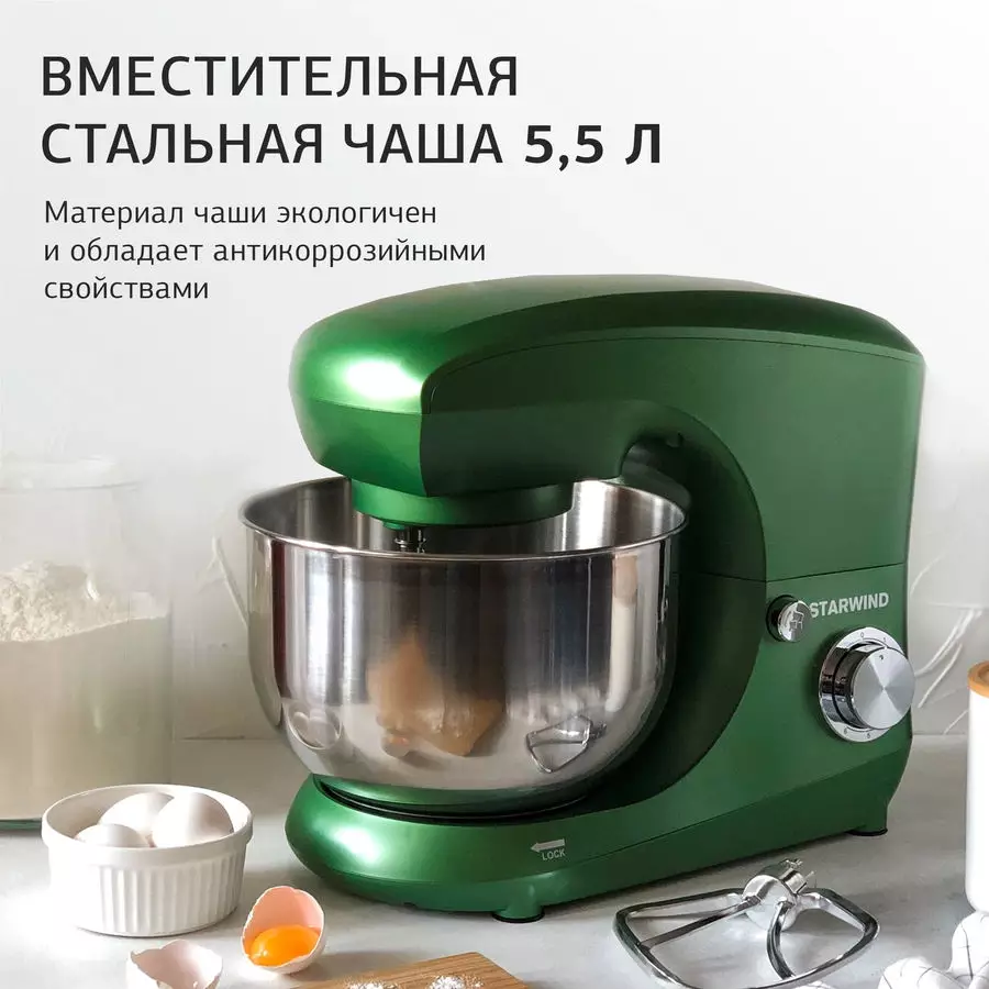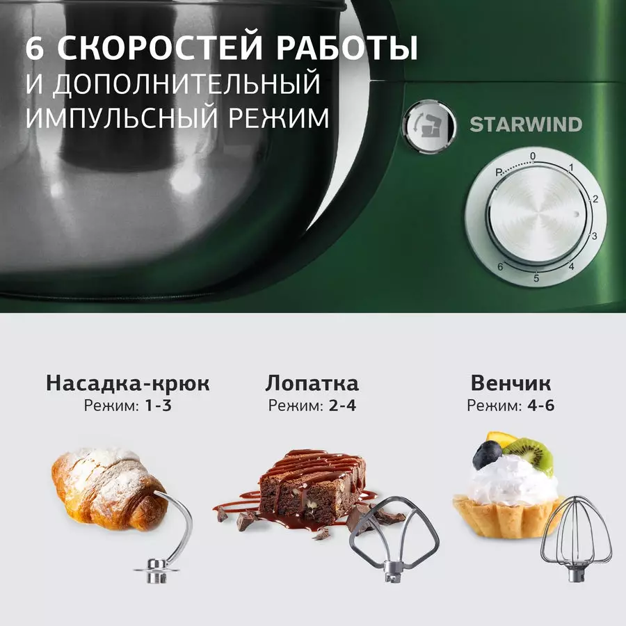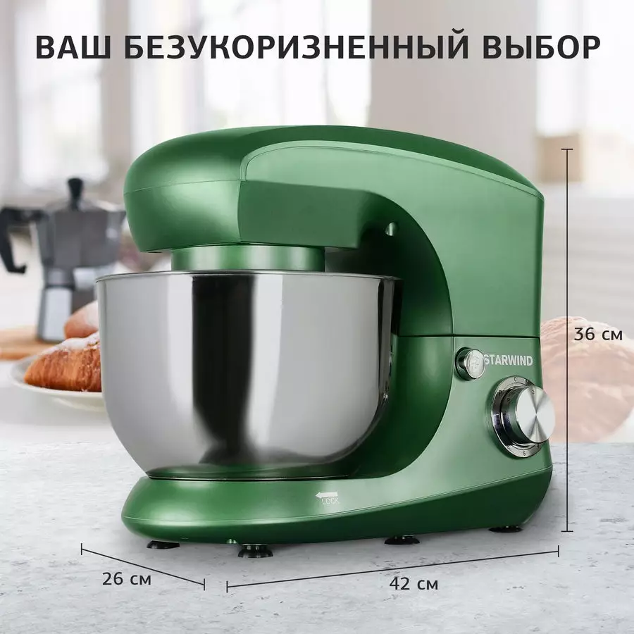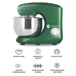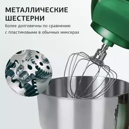 ОписаниеСтильный дизайн и обтекаемая форма позволят этой модели отлично вписаться в атмосферу любой кухни. Благородя изменению длины венчика и увеличению размеров крюков для теста, это устройство позволит более тщательно смешивать продукты в отличие от предыдущих моделей. Лопатка имеет два разветвления.