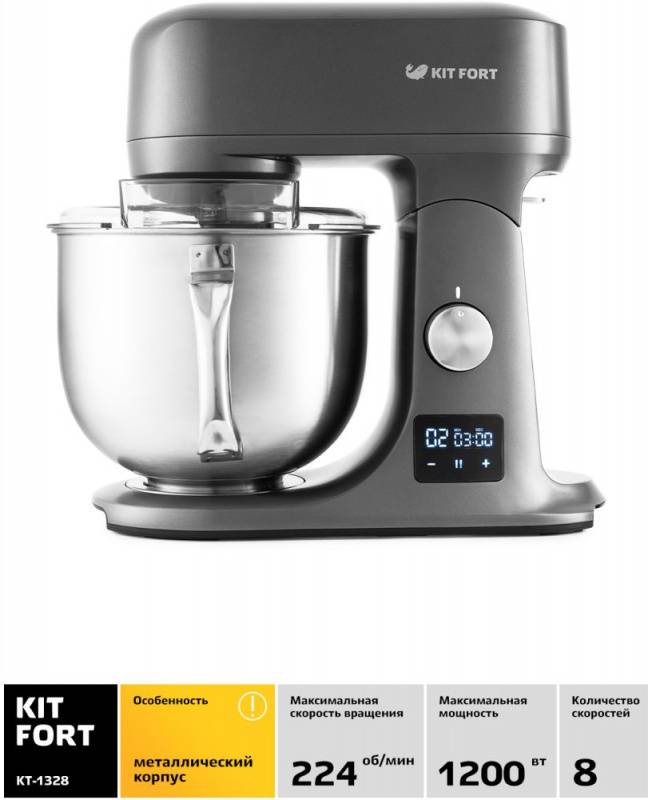 Миксер планетарный Kitfort КТ-1328 серебристый