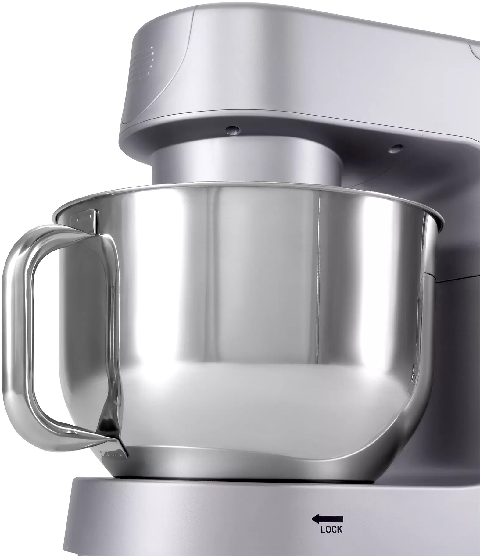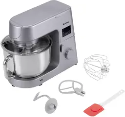 • Комплектация Миксер, чаша, защитный обод для чаши, насадка-венчик, насадка-лопатка, насадка-крюк, кулинарная силиконовая лопатка, книга рецептов, мануал с гарантийным талоном