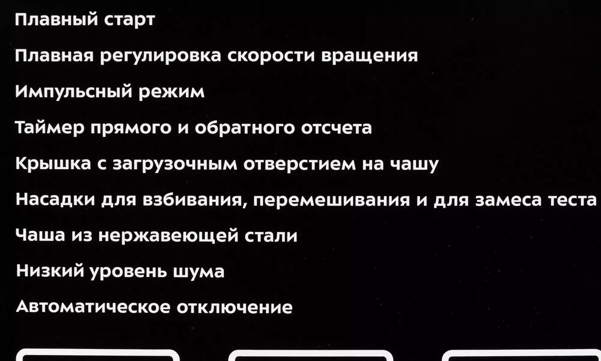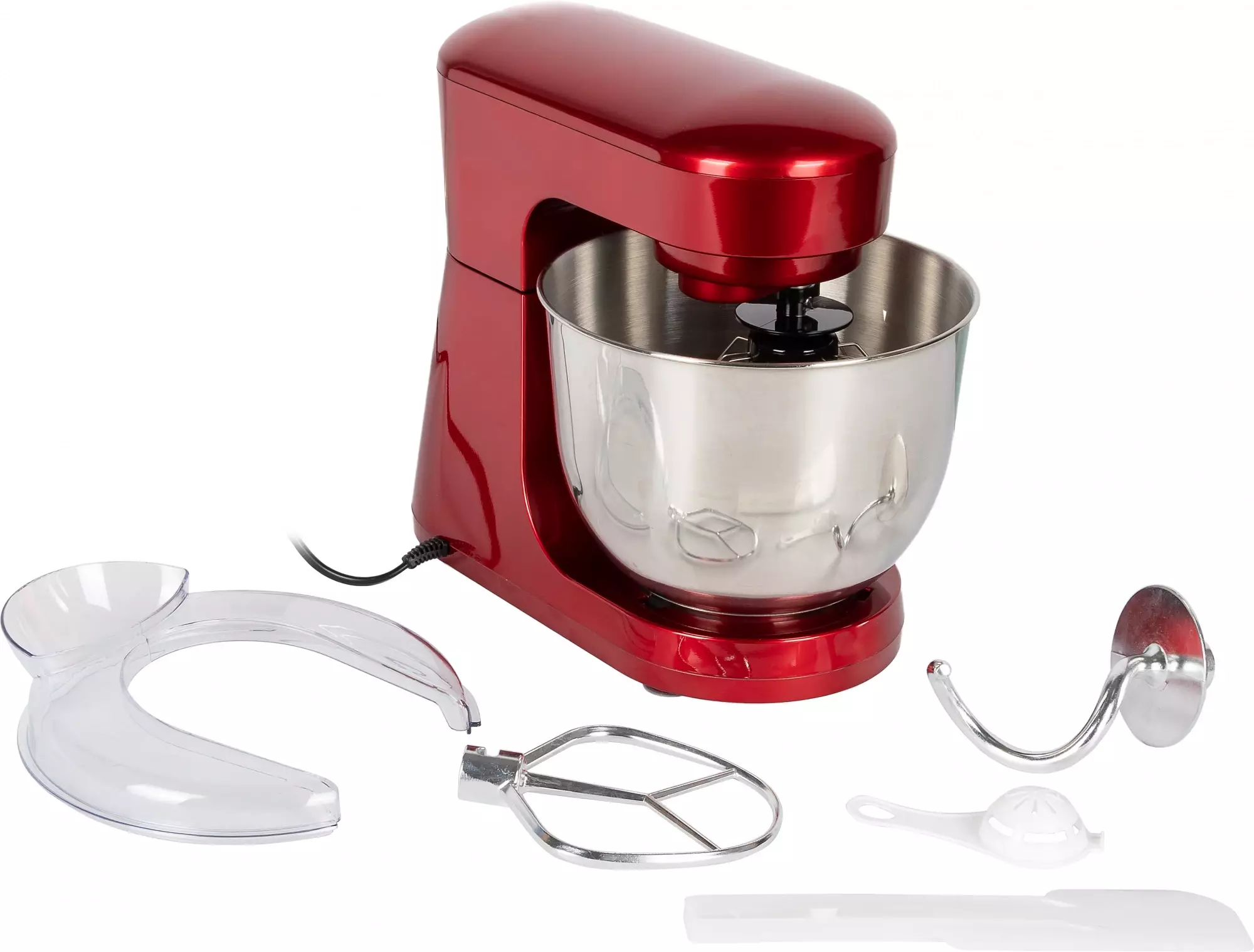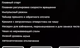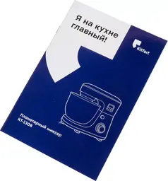 КомплектацияМиксер, чаша, крышка чаши, лопатка, насадка для взбивания, насадка для смешивания, насадка для замеса теста, сепаратор для яичных белков, инструкция