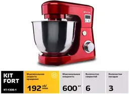 ОписаниеПланетарный стационарный миксер Kitfort КТ-1308 поможет смешать ингредиенты, взбить яичный белок или сливки, приготовить картофельное пюре, соус, крем, мусс, замесить густое и жидкое тесто, а также многое другое.