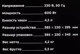 Объем чаши4.2 л