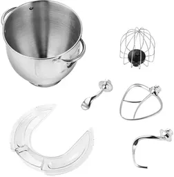 • Комплектация 1. Миксер –– 1 шт. 2. Чаша миксера –– 1 шт. 3. Крышка чаши –– 1 шт. 4. Крюк для замеса теста –– 1 шт. 5. Малый крюк для замеса теста –– 1 шт. 6. Насадка для смешивания –– 1 шт. 7. Венчик для взбивания –– 1 шт. 8. Руководство по эксплуатации — 1 шт. 9. Коллекционный магнит — 1 шт.* *опционально