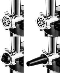 • Комплектация "Комплектация 1. Моторный блок — 1 шт. 2. Чаша миксера — 1 шт. 3. Крышка чаши миксера — 1 шт. 4. Венчик для взбивания — 1 шт. 5. Насадка для смешивания — 1 шт. 6. Крюк для замешивания теста — 1 шт. 7. Мясорубка — 1 компл.: • Загрузочный блок — 1 шт • Кольцевая гайка — 1 шт.