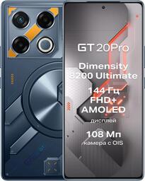 Смартфон INFINIX GT 20 Pro работает на базе мощного восьмиядерного процессора MediaTek Dimensity 8200 Ultimate и графического ускорителя Mali-G610. Производительности достаточно, чтобы выполнять любые повседневные задачи (соцсети, мессенджеры, телефонные звонки, веб-серфинг) и играть в самые требовательные мобильные игры вроде PUBG Mobile и Genshin Impact.</p> <p>Быстродействие обеспечивает 12 ГБ ОЗУ, которую можно увеличить в два раза за счет внутреннего накопителя объемом 256 гигабайт.</p>\n<p><strong>Особенности модели</strong></p>\n<ul>\n<li>стандарт связи 4G/5G;</li>\n<li>возможность зарядки при низкой температуре;</li>\n<li>защита от пыли и влаги IP54.</li>\n</ul>\n<p>Для быстрой разблокировки модель получила подэкранный сканер отпечатка пальца. Также поддерживается разблокировка по лицу. К другим преимуществам можно отнести модуль Wi-Fi AX (шестого поколения), который гарантирует высокоскоростной доступ к интернету, NFC и инфракрасный порт IrDA для управления бытовой техникой.</p>\n<p><strong>AMOLED-панель</strong></p>\n<p>6,78-дюймовый дисплей имеет безрамочный дизайн для увеличения области просмотра, отличается точной реалистичной цветопередачей и поддерживает технологию HDR10+. Частота обновления составляет 144 Гц, благодаря чему даже в динамичных сценах гарантируется максимально плавная картинка без эффекта дрожания и разрыва кадров.</p>\n<p>Защитное стекло Panda Glass надежно защищает от царапин, а благодаря олеофобному покрытию палец без труда скользит по экрану. В настройках можно активировать функцию, которая предотвращает случайные нажатия, когда телефон находится в кармане.</p>\n<p><strong>Камера 108 Мп</strong></p>\n<p>Основной тыловой объектив с оптической стабилизацией позволяет снимать фотографии хорошего качества в разных условиях освещения и записывать видеоклипы в 4К-разрешении. Вспомогательные сенсоры предназначены для размытия заднего фона на портретах и любительской макросъёмки.