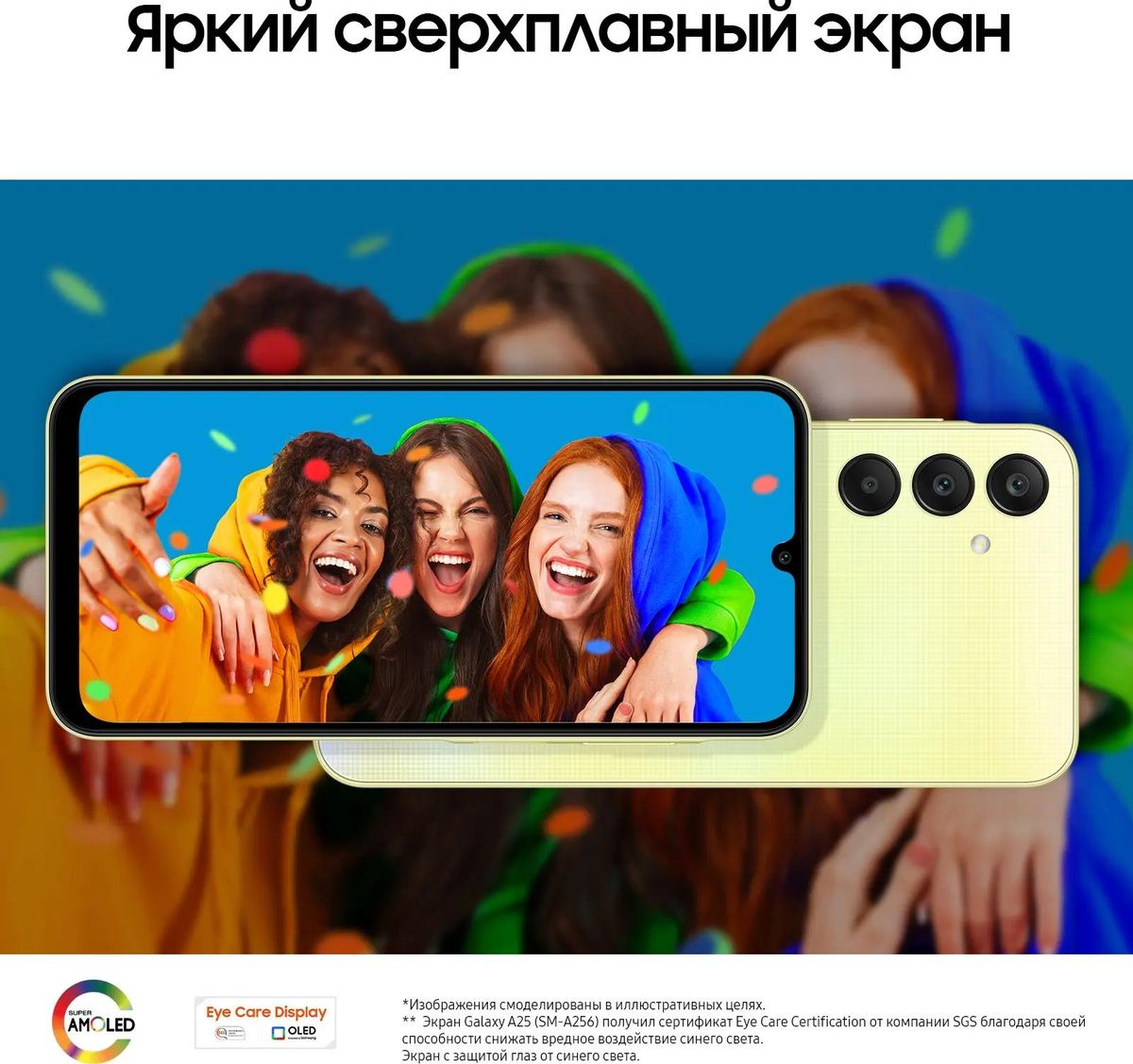 Смартфон Samsung Galaxy A25 6/128Gb, SM-A256E, желтый